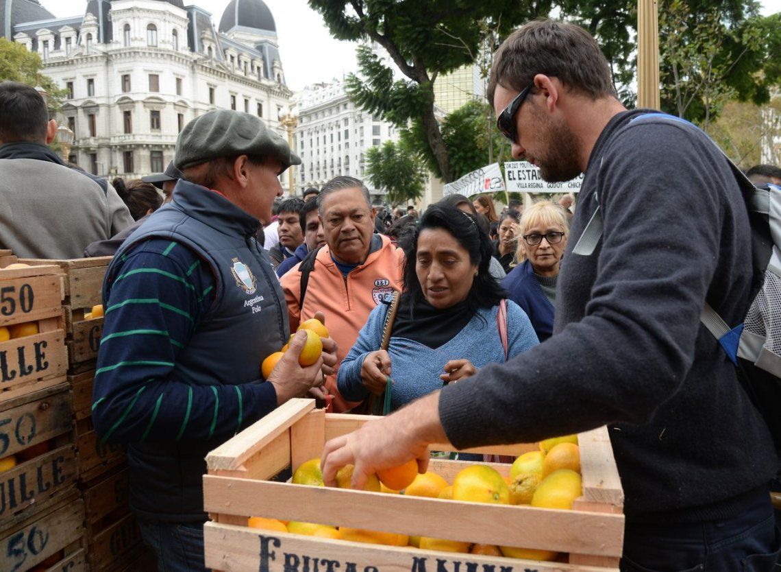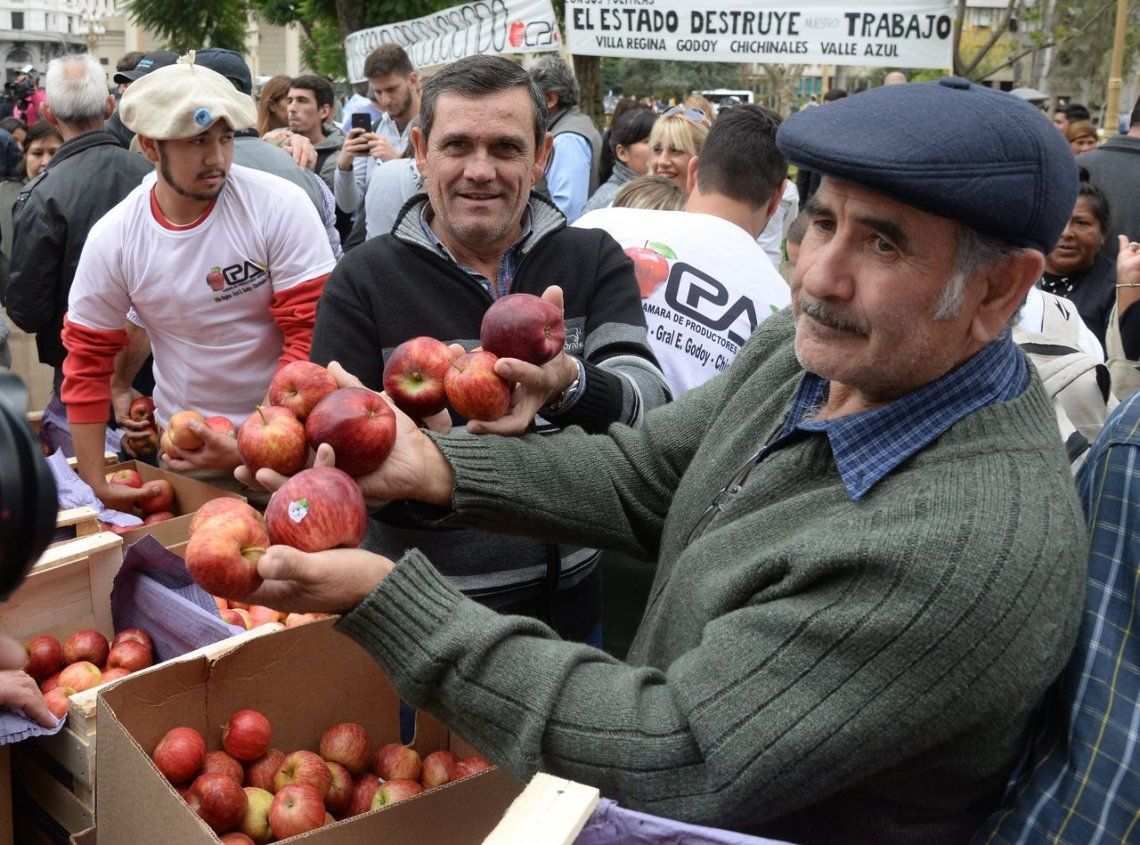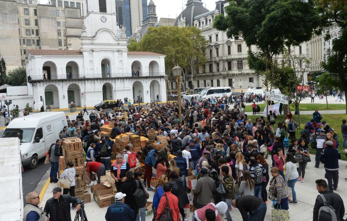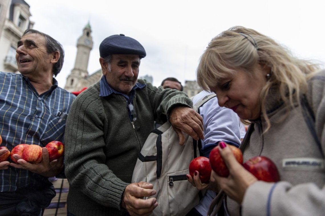 Las fotos del frutazo en Plaza de Mayo Pequeños productores de Neuquén y Río Negro, repartieron unos 20 mil kilos de manzanas y cítricos