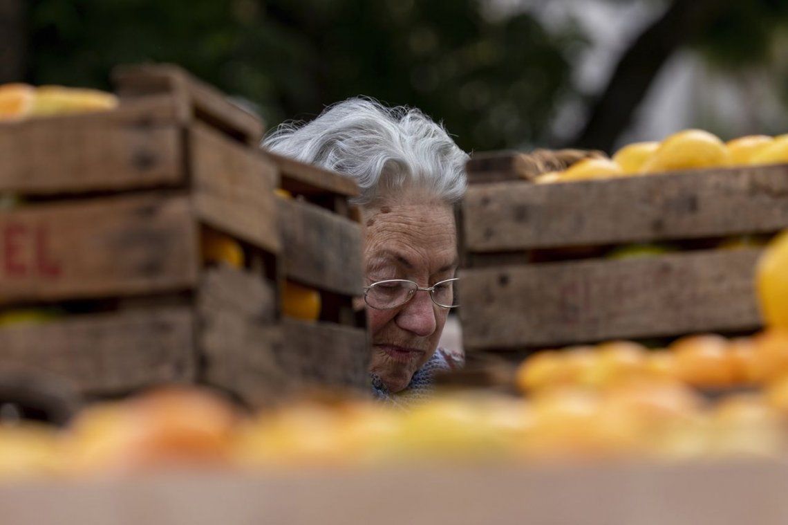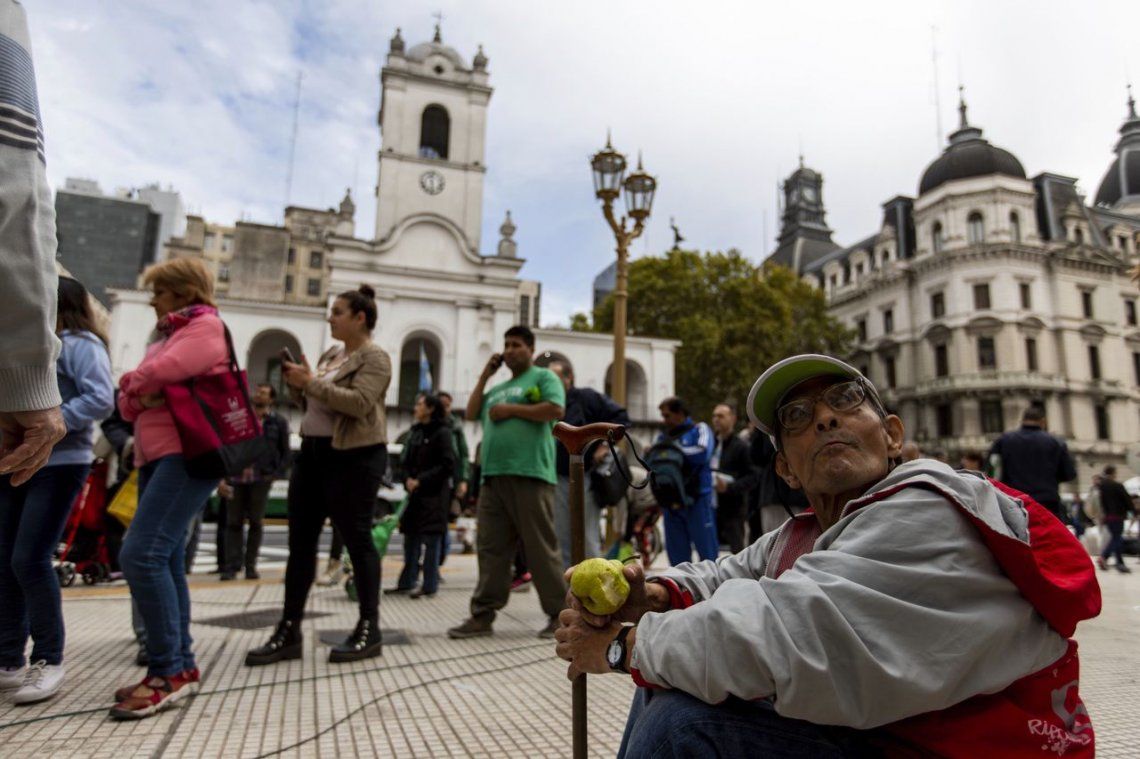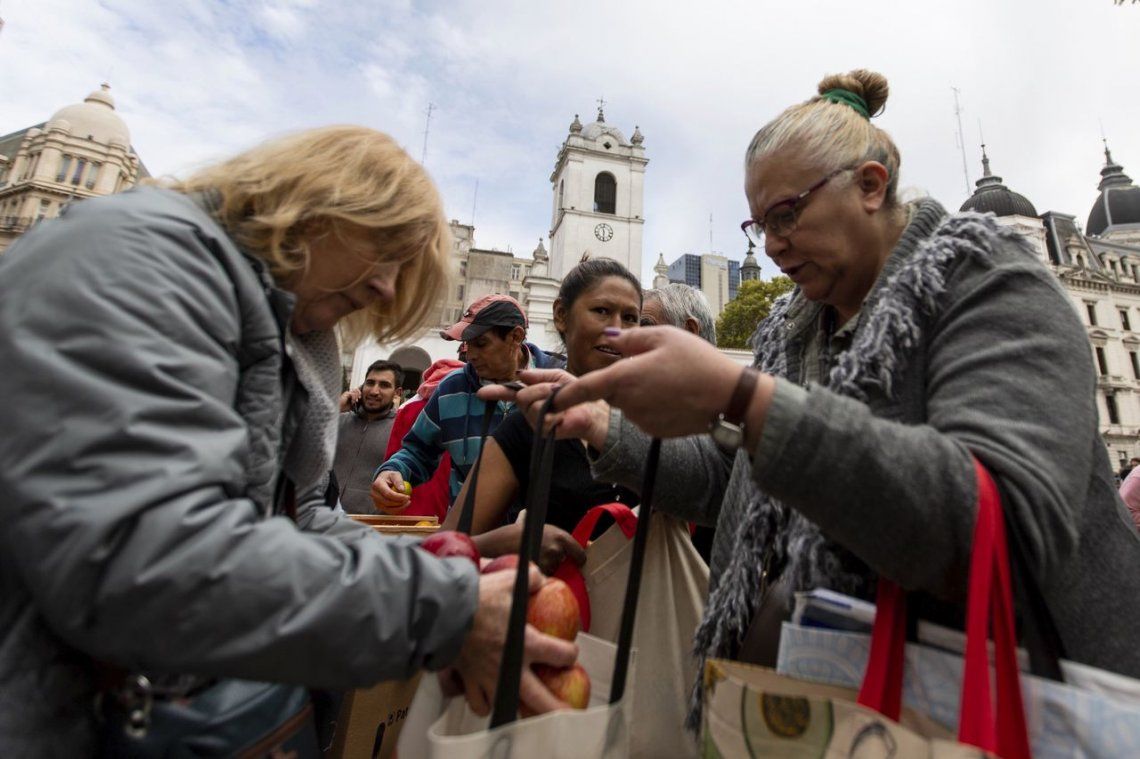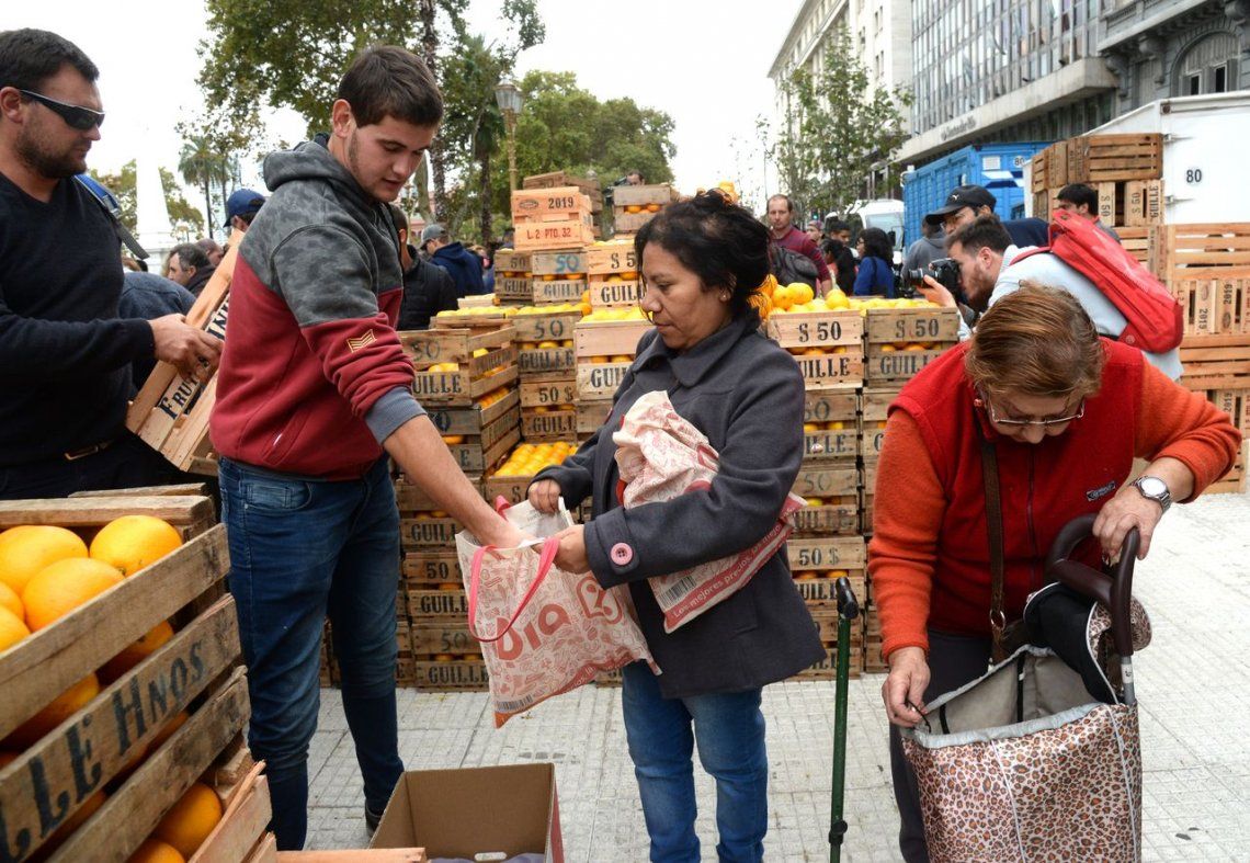Las fotos del frutazo en Plaza de Mayo Pequeños productores de Neuquén y Río Negro, repartieron unos 20 mil kilos de manzanas y cítricos