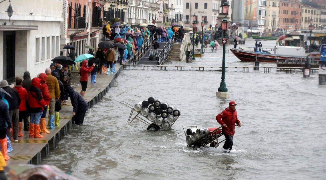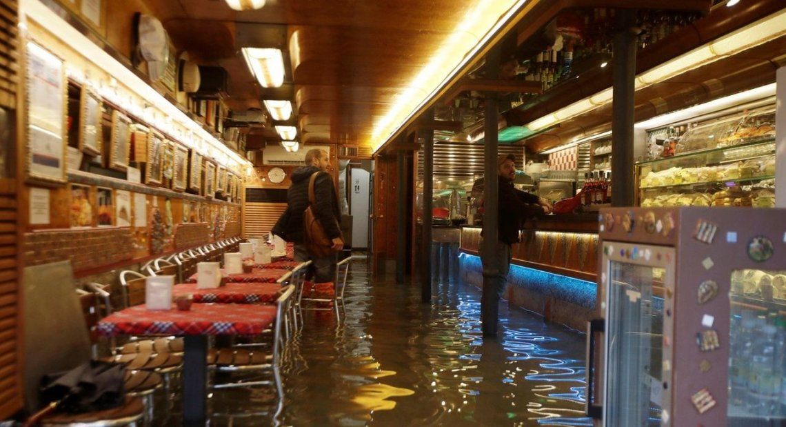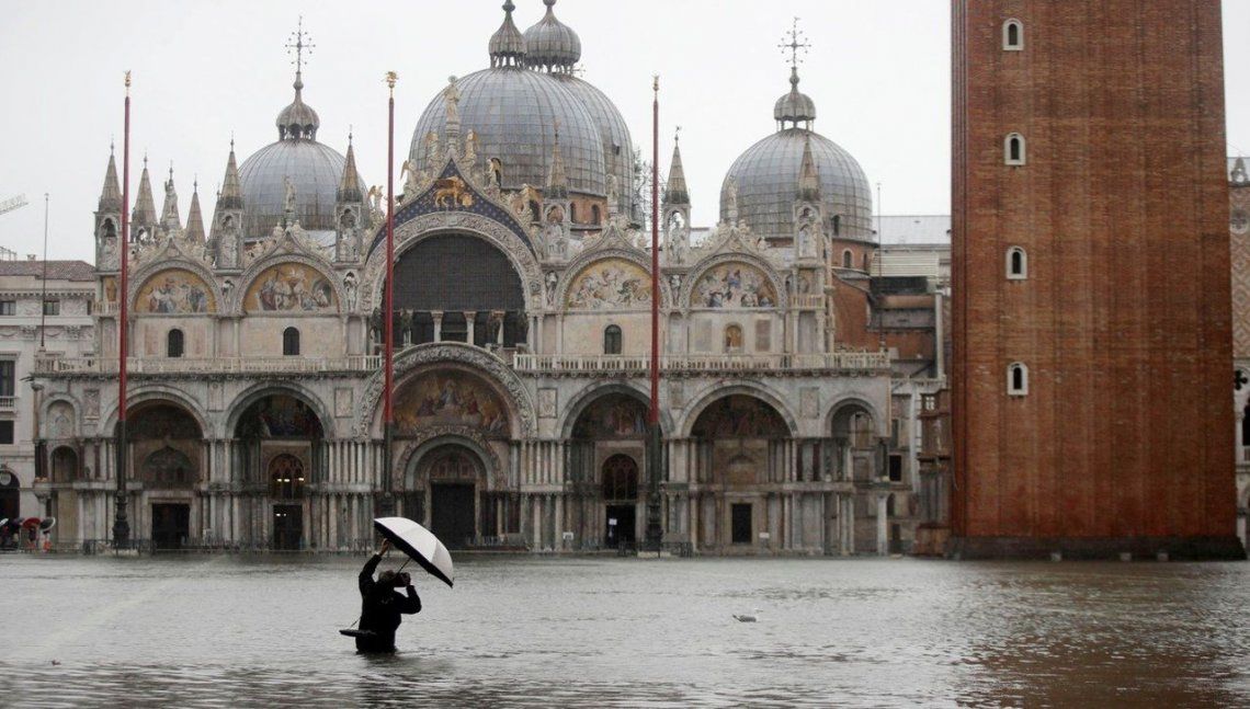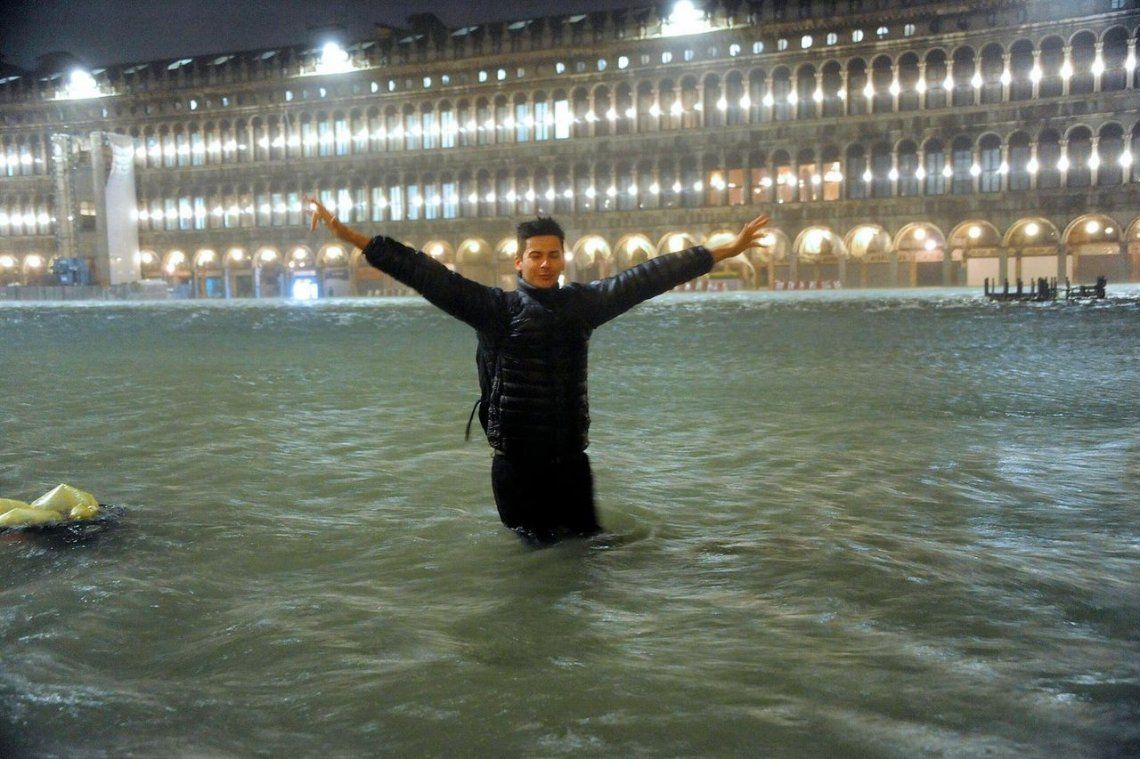 La "acqua alta" (marea alta) superó los 187 centímetro e invadió la Basílica de San Marcos. Una inundación récord, no se registran estos valores desde 1966, cuando el agua llegó a 194 centímetros. Medios italianos informaron que hubo dos muertos