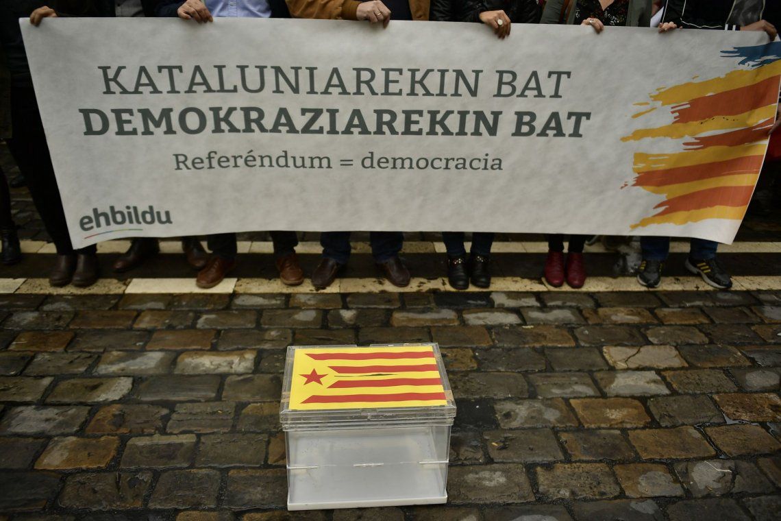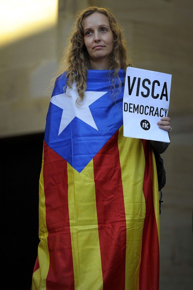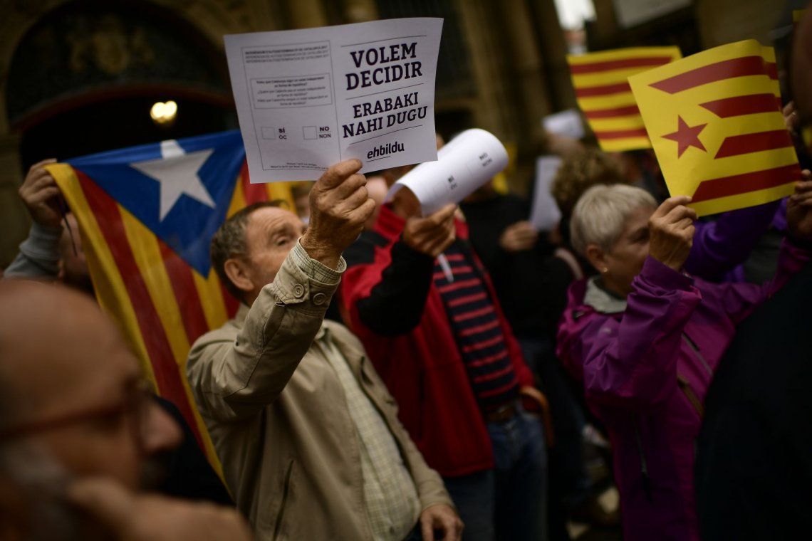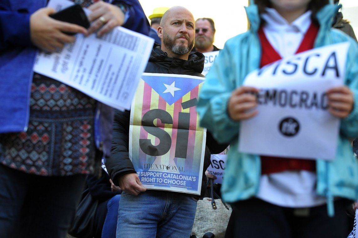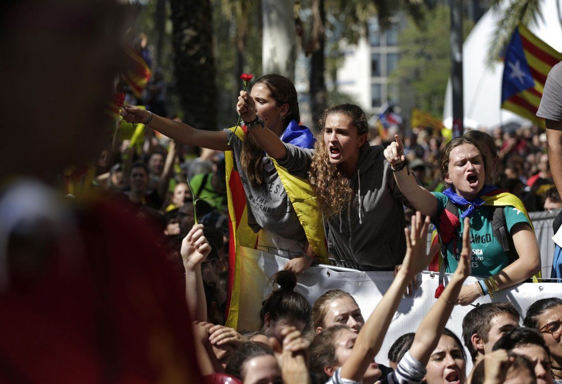 Las consignas estuvieron acompañadas de cantos del himno catalán y pancartas a favor de la democracia.