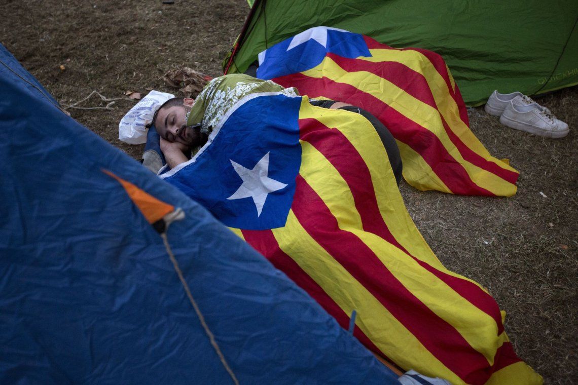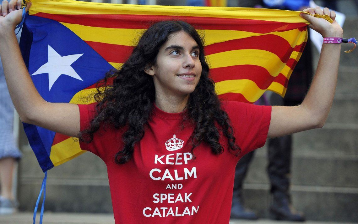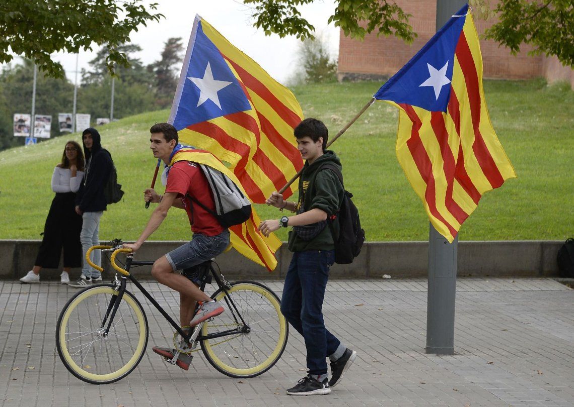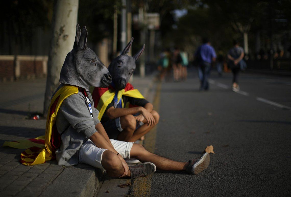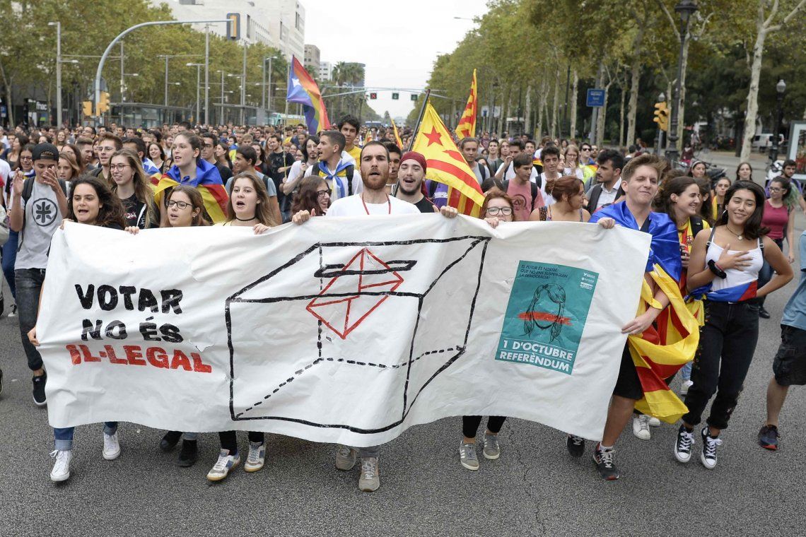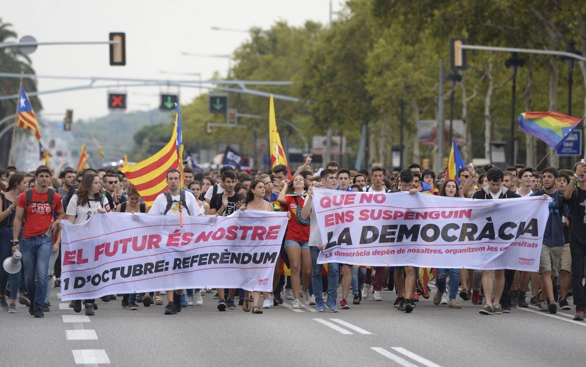 Las consignas estuvieron acompañadas de cantos del himno catalán y pancartas a favor de la democracia.