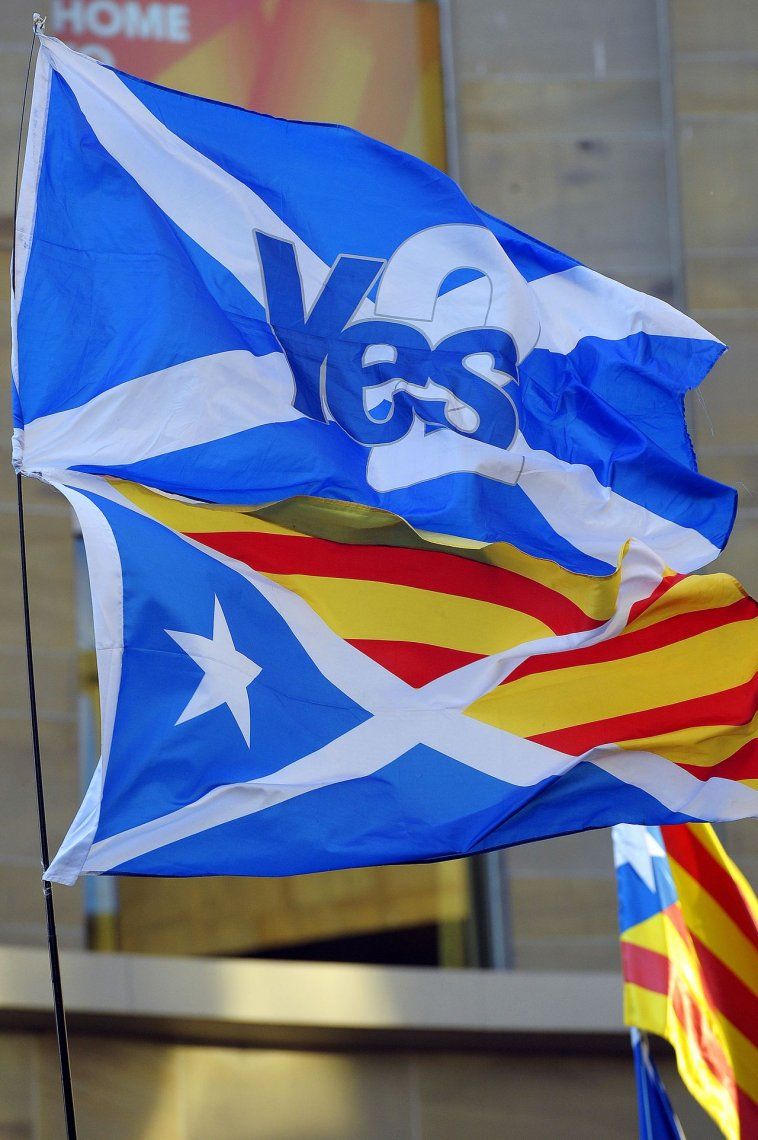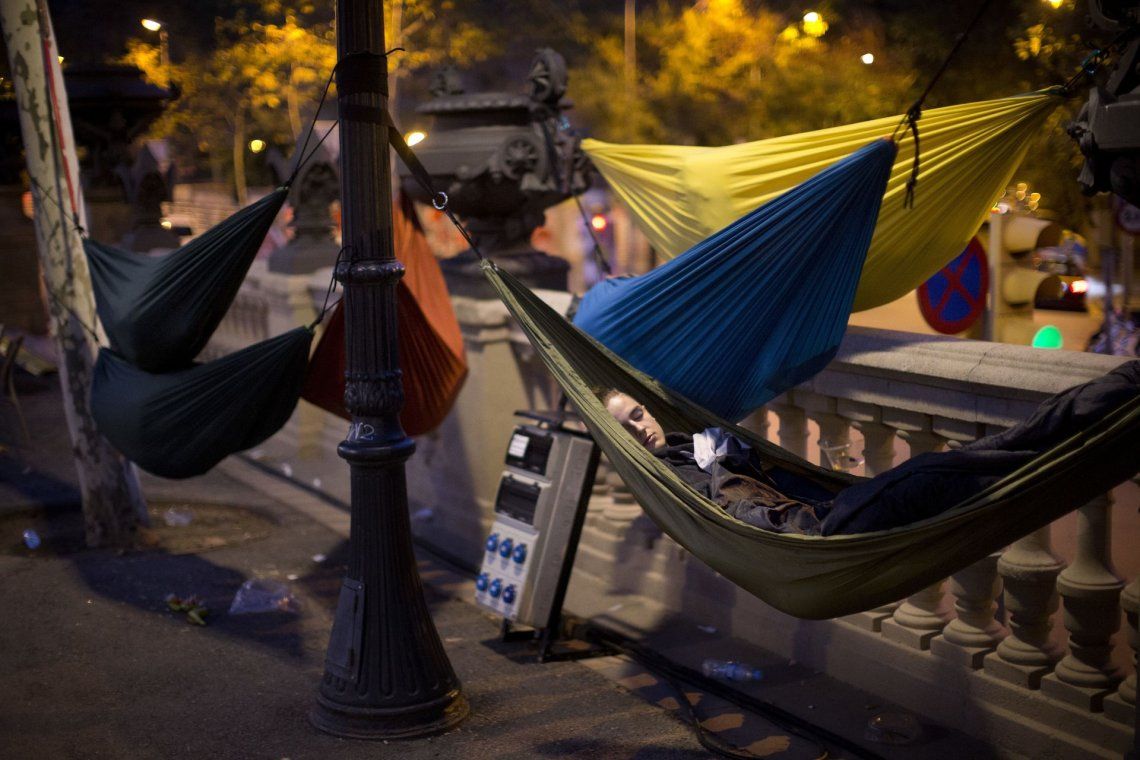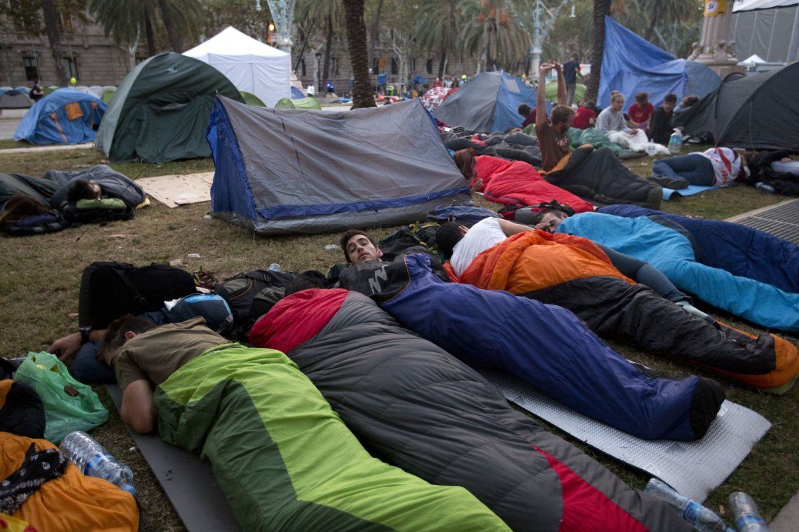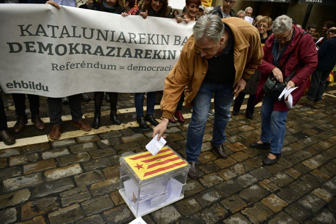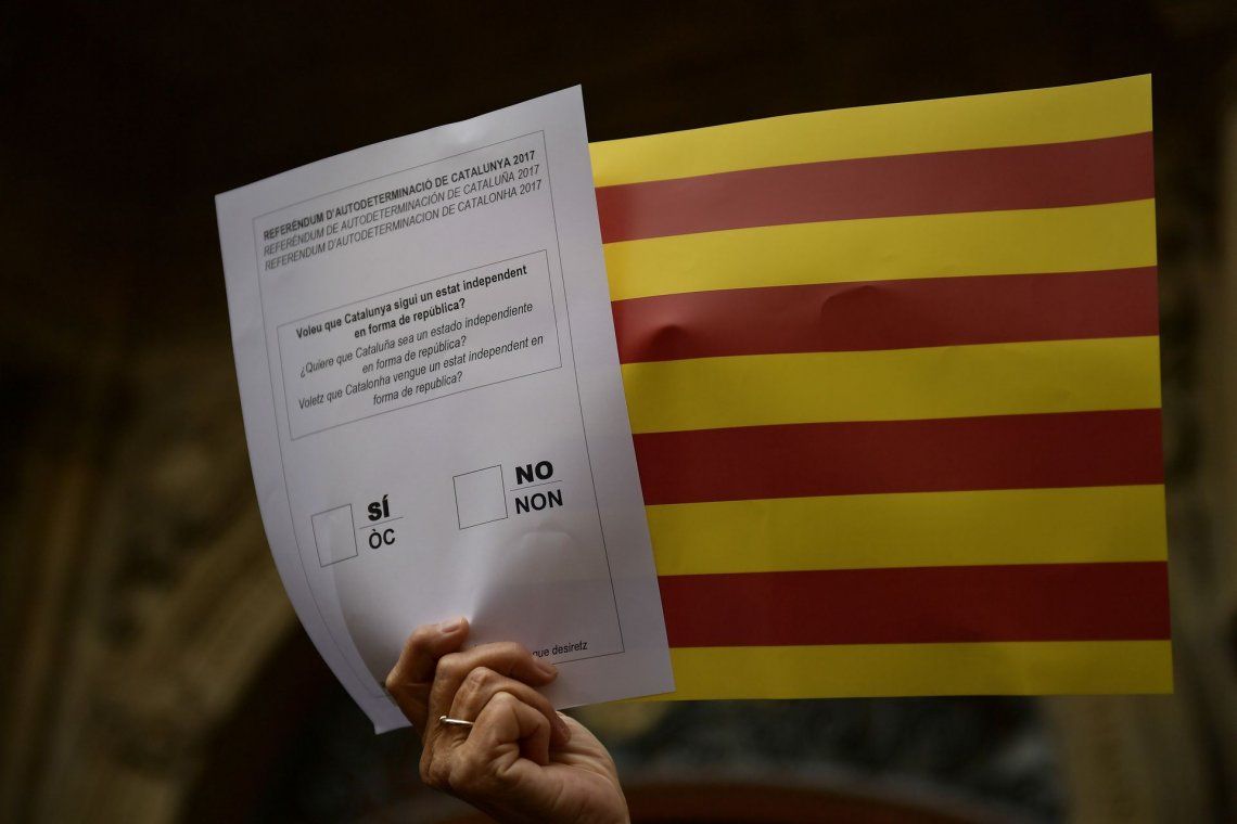 Las consignas estuvieron acompañadas de cantos del himno catalán y pancartas a favor de la democracia.