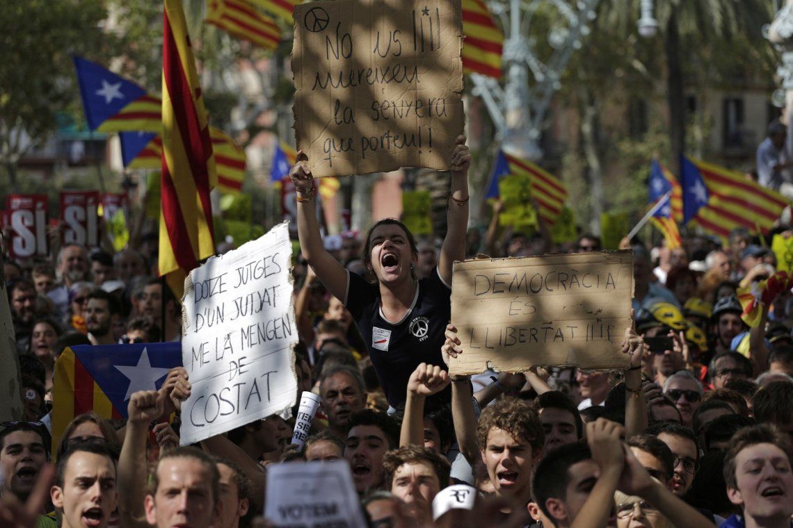 El arresto de funcionarios del gobierno catalán para frenar el referéndum del 1 de octubre hizo que la gente saliera a manifestar su indignación