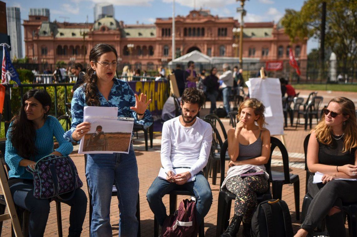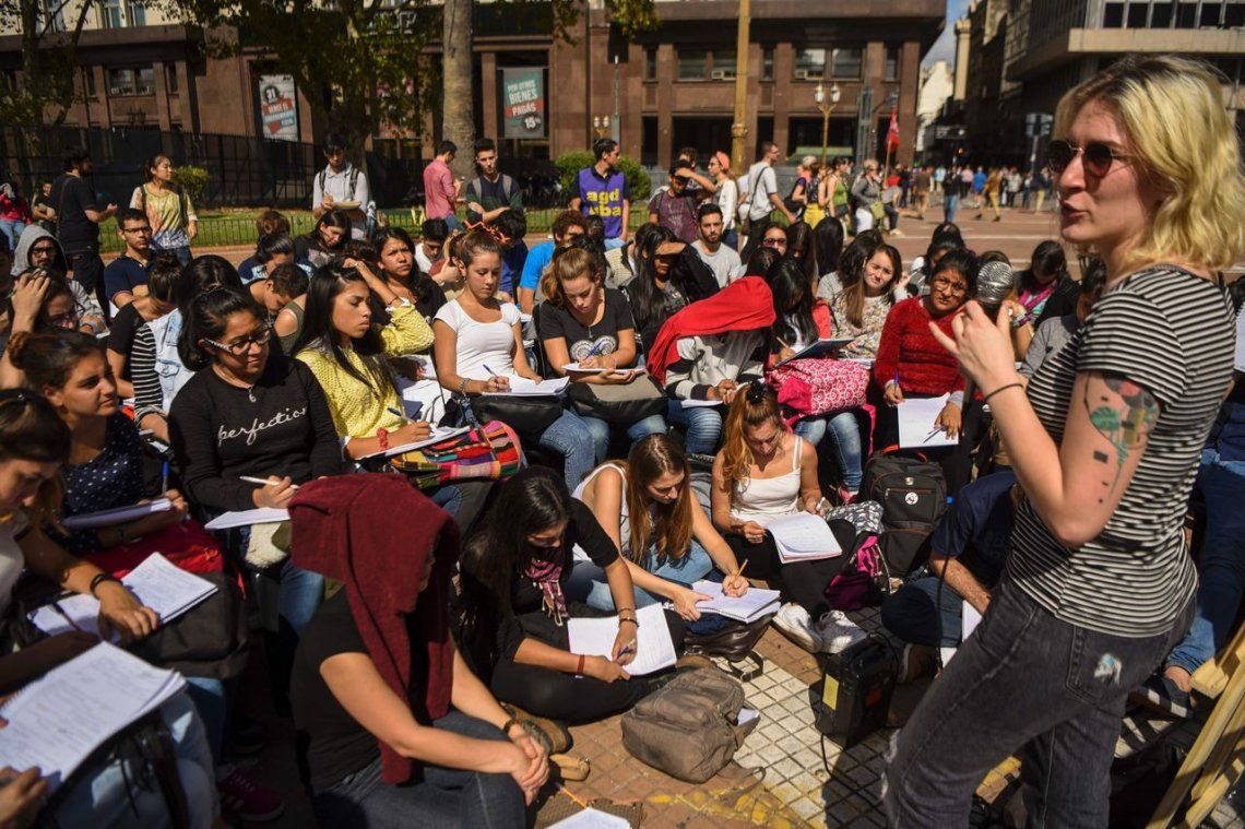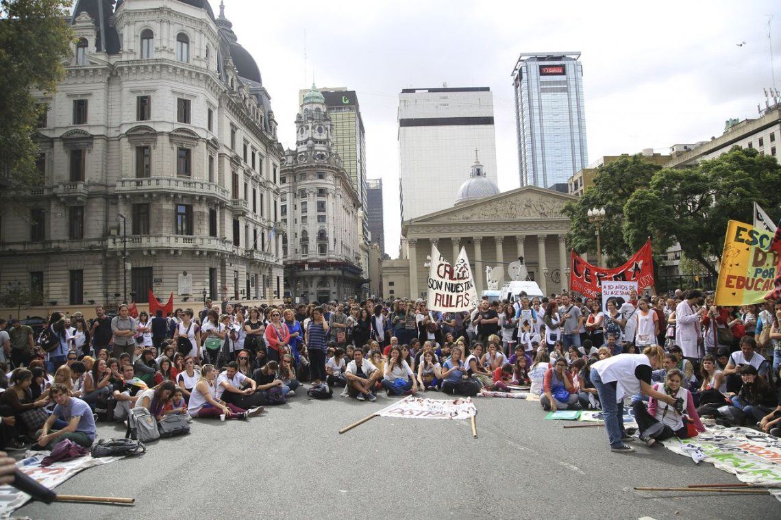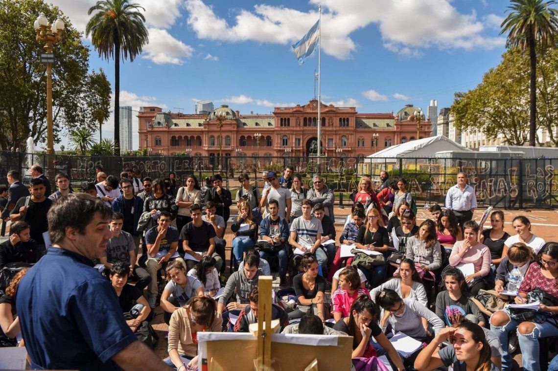 Docentes universitarios realizan clases públicas en Plaza de Mayo en repudio a la represión del domingo en el Congreso