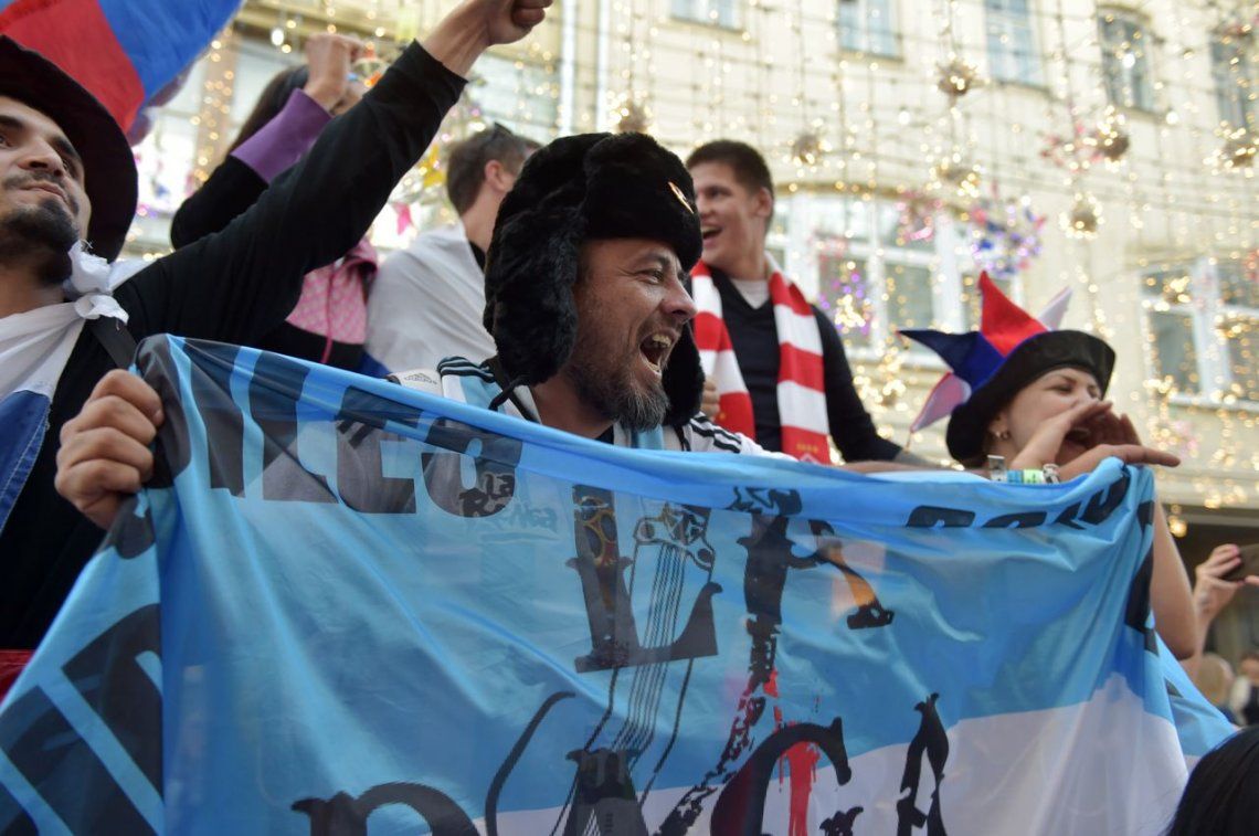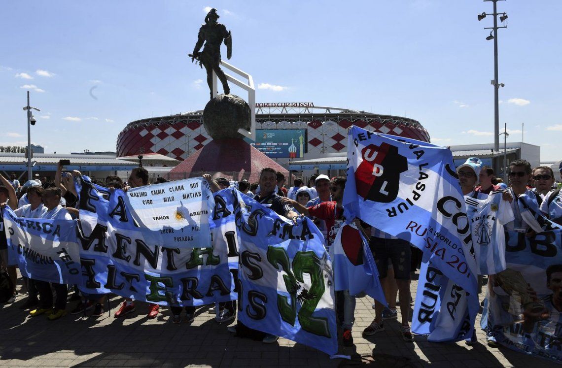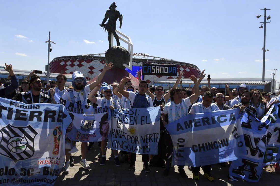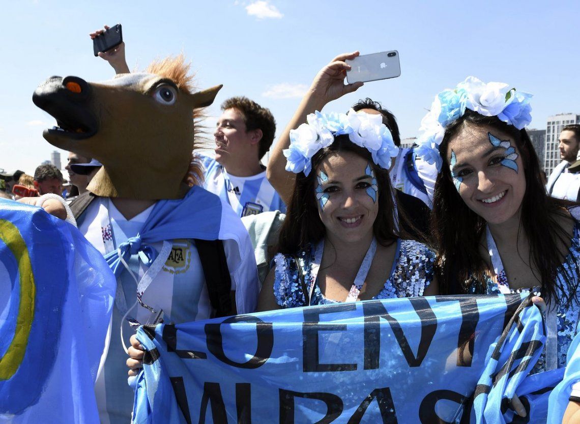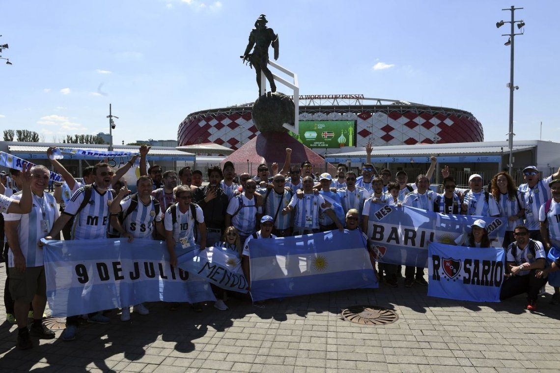 Todo el color de los hinchas argentinos en Moscú Los fanáticos argentinos se hacen sentir en la previa del partido ante Islandia.