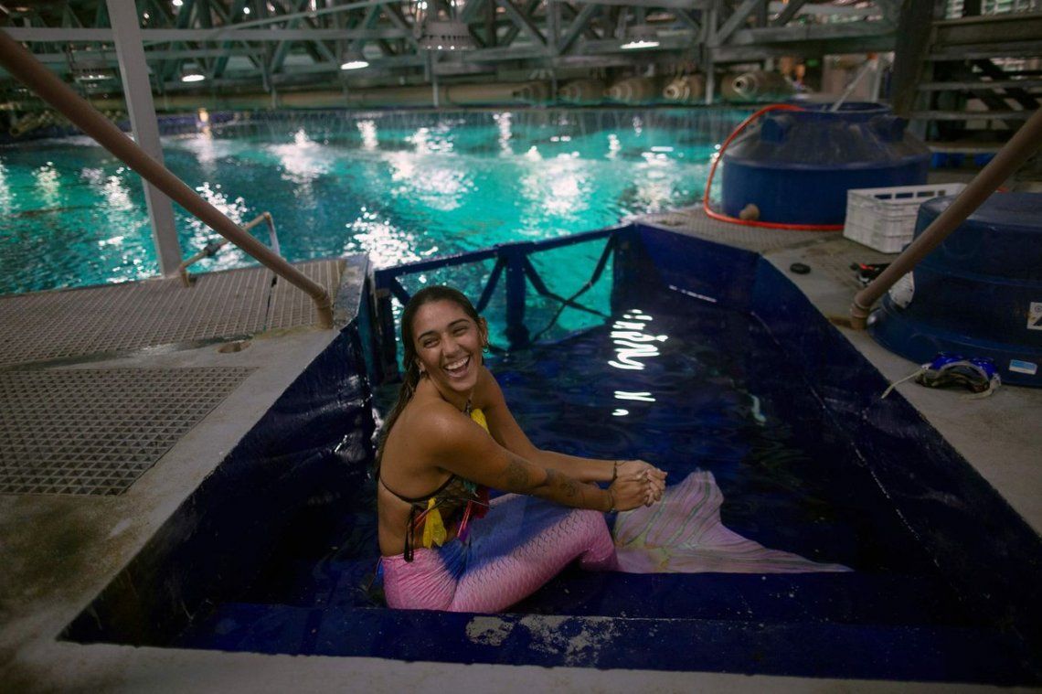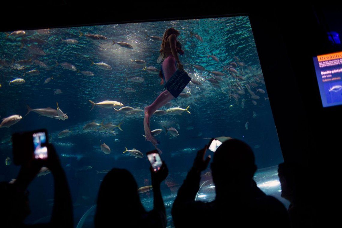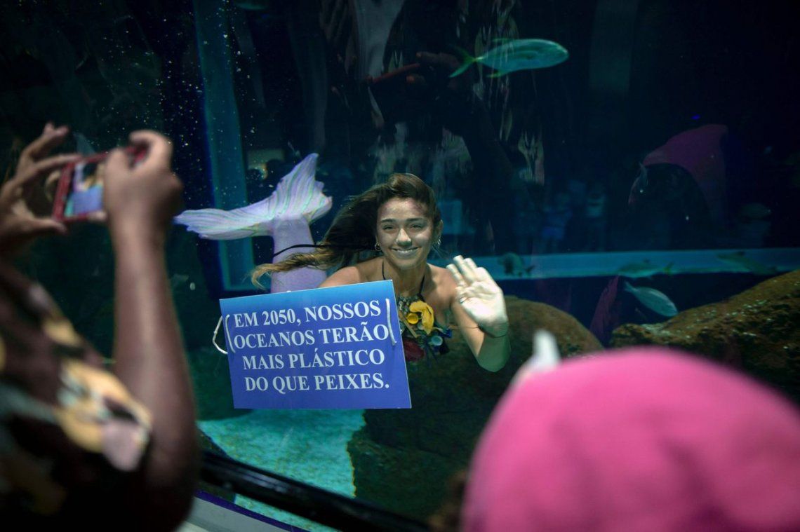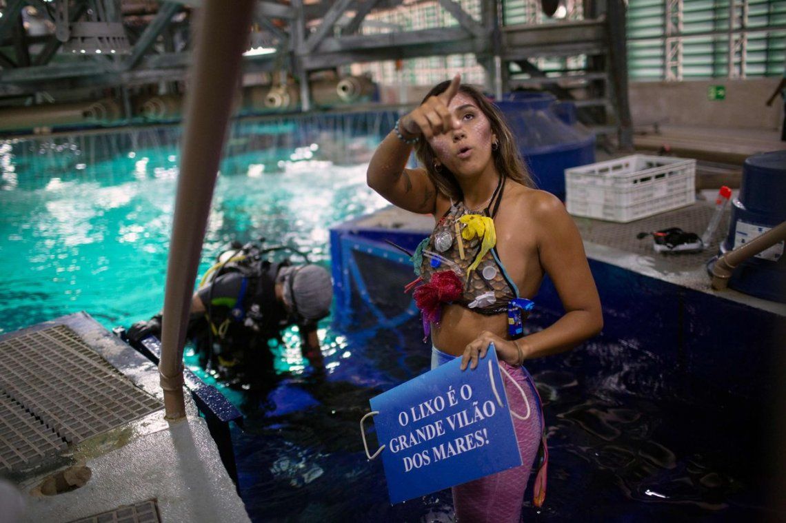 Isabela Cardoso, estudiante de biología marina de 21 años, buceó como sirena en el acuario de Río de Janeiro para concientizar sobre la contaminación los océanos y como corre peligro la vida marina