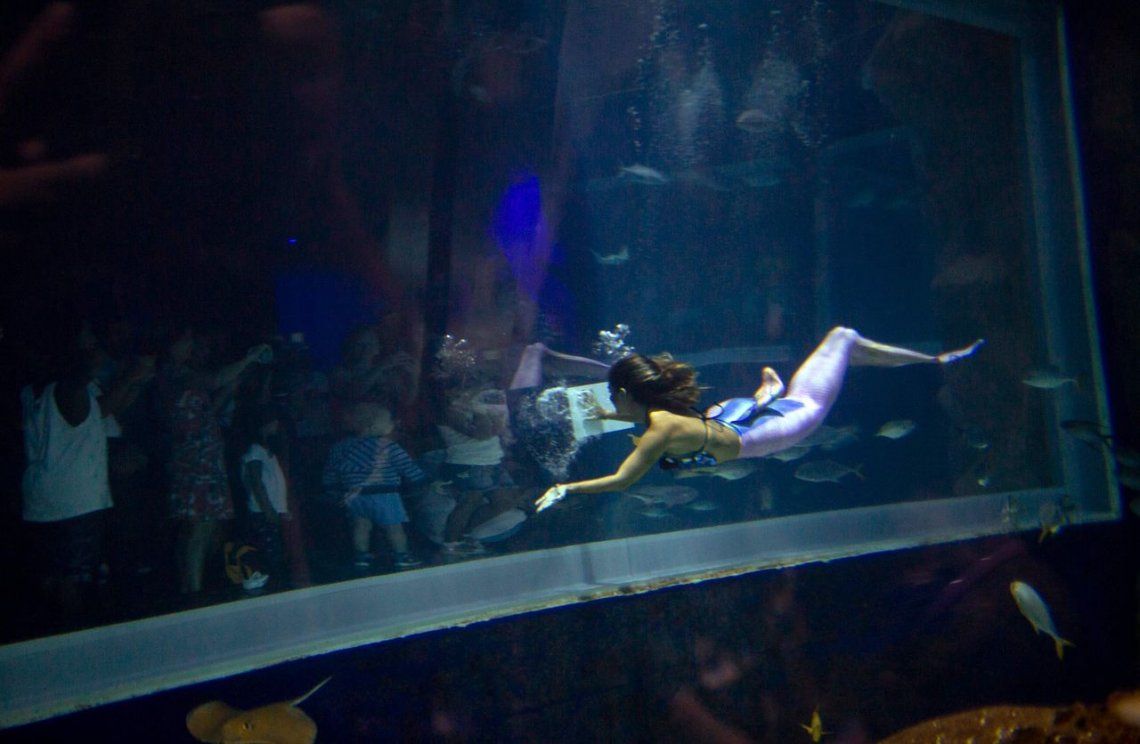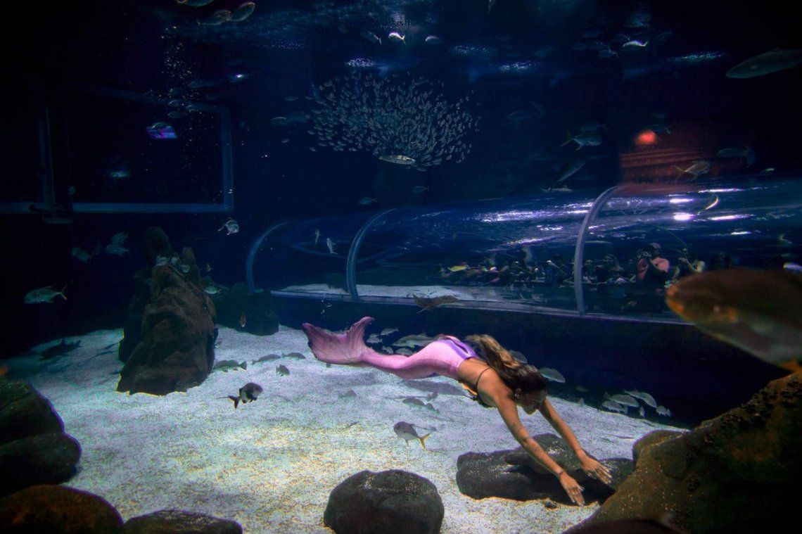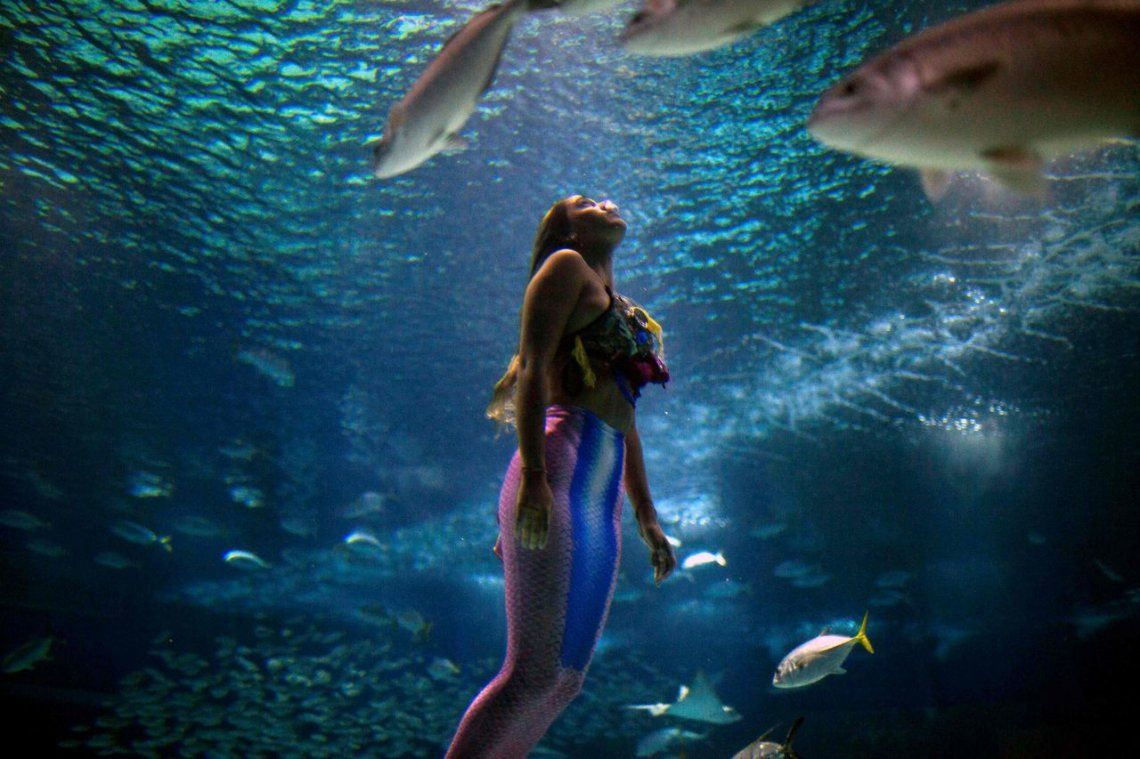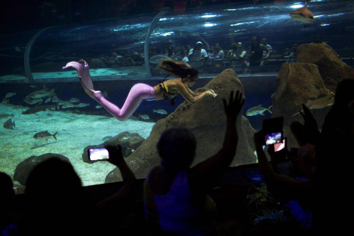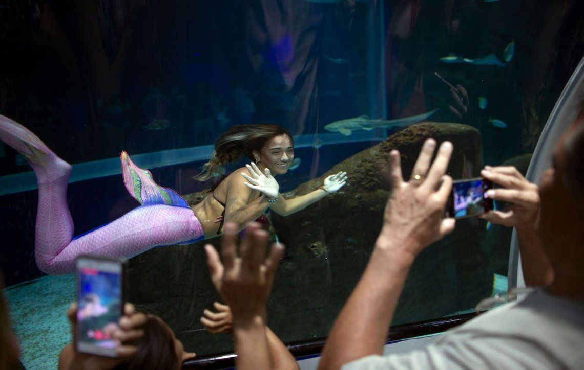 Isabela Cardoso, estudiante de biología marina de 21 años, buceó como sirena en el acuario de Río de Janeiro para concientizar sobre la contaminación los océanos y como corre peligro la vida marina