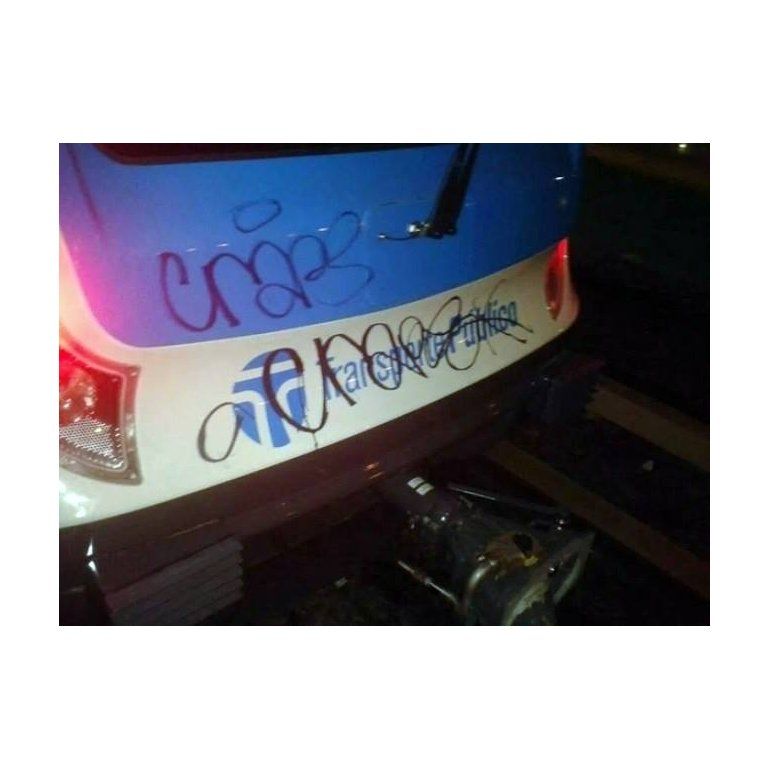 Comenzaron a circular en horas de la mañana de este martes fotografías del frente de una de las formaciones escritas con gruesos marcadores indelebles.