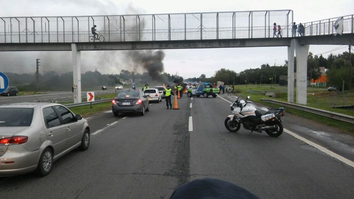 Según confirmaron a la agencia de noticias Télam efectivos de la policía vial, por el momento se continúan desviando a los vehículos por la ruta colectora y hay colas de más de 5 kilómetros de extensión.