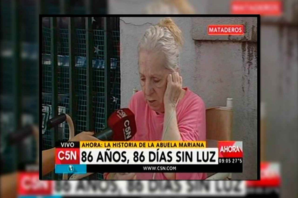 Según le contó la mujer a la señal C5N, sus vecinos la ayudaron a sobrellevar el intenso calor que se abatió sobre la ciudad en los últimos días mediante cables que estiraron hasta su casa para que por lo menos pudiera conectar un ventilador.