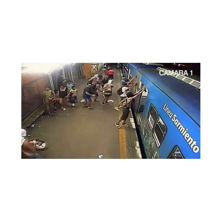 Mientras huyen, golpean y atacan al tren, e incluso se ve cómo uno de ellos lanza un adoquín contra la cabina del conductor, que derivó en la rotura del vidrio de la cabina y provocó lesiones en el motorman.