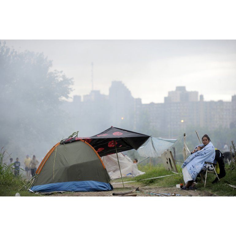 En el predio existen numerosas carpas precarias donde se observan familias con niños, mientras el movimiento de gente es incesante ya que traen abrigos y comida para continuar con la toma.