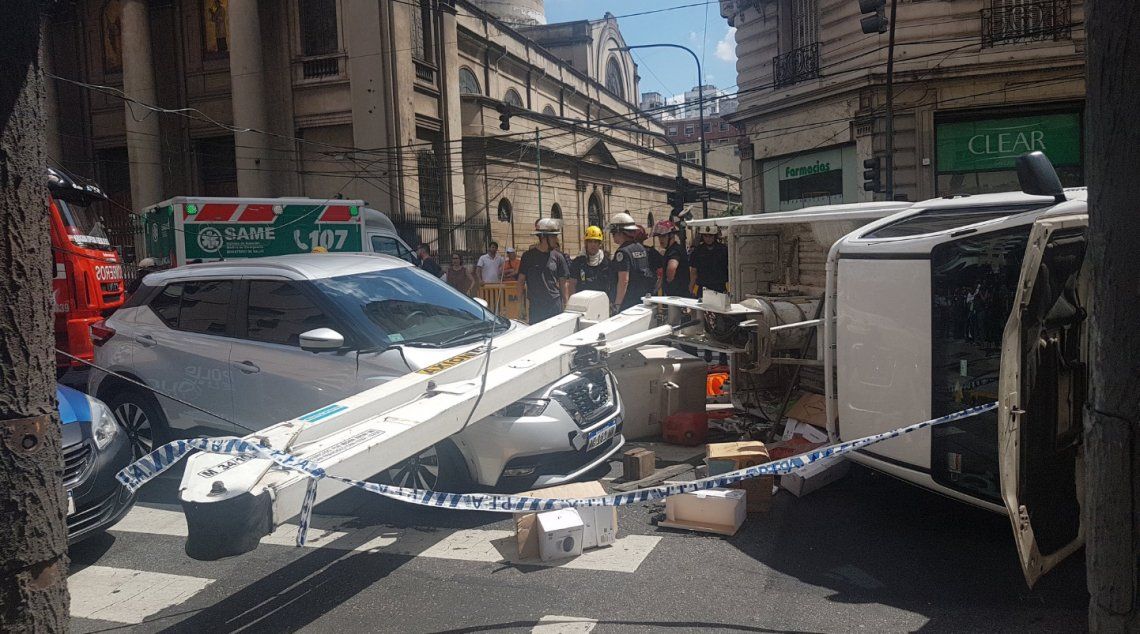 El hecho ocurrió alrededor de las 14.30 en la intersección de las calles Callao y Tucumán, a cinco cuadras del Congreso Nacional. El vehículo estaba destinado a la reparación de luminarias y semáforos, y, estando en movimiento, la barquilla comenzó a elevarse enganchando el cableado aéreo, lo que produce el vuelco y caída sobre otro vehículo.