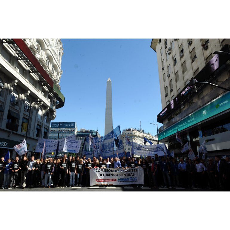 Delegados y trabajadores se concentraron frente al Banco Central, donde los despedidos realizan desde hace más de tres semanas un acampe de protesta, y desde allí marcharon en movilización por las calles céntricas.