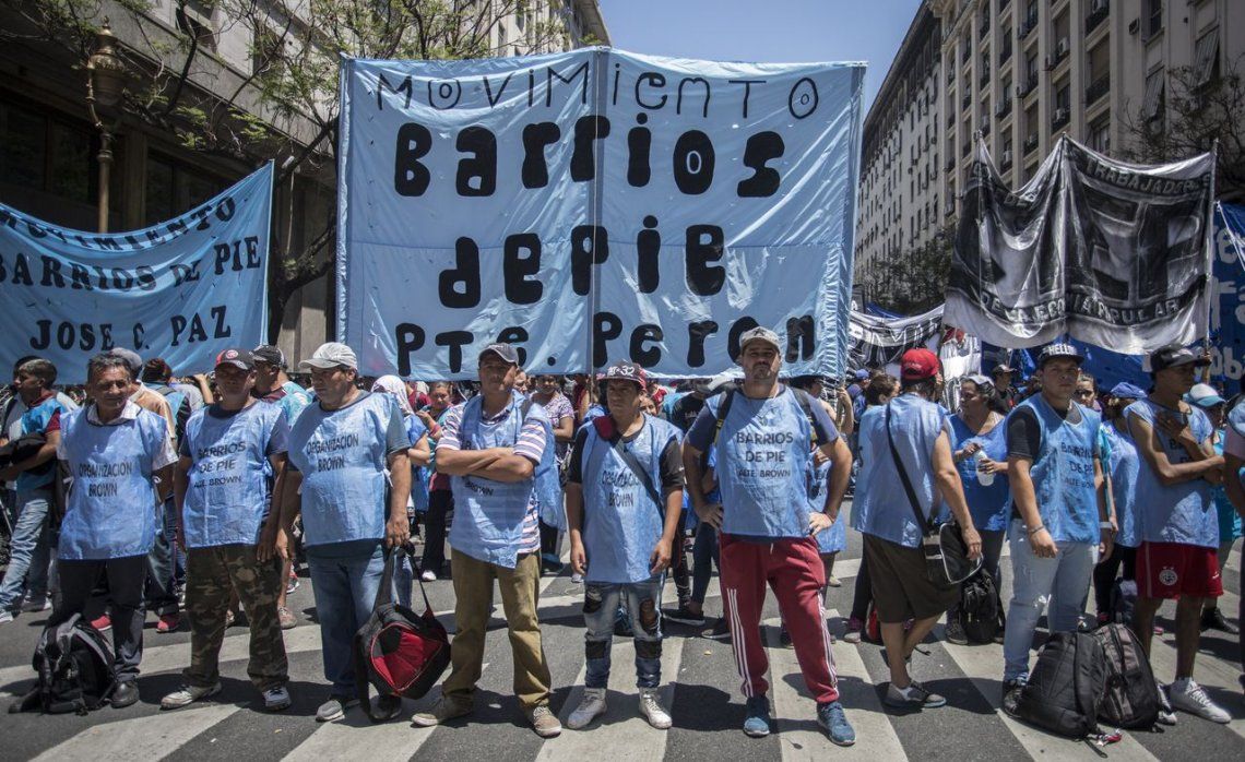La organización social Barrios de Pie se manifestó en las puertas de distintas sucursales de grandes cadena de supermercados de todo el país, en el marco de una jornada de protesta en que les piden a esas empresas entregas de alimentos para comedores comunitarios.