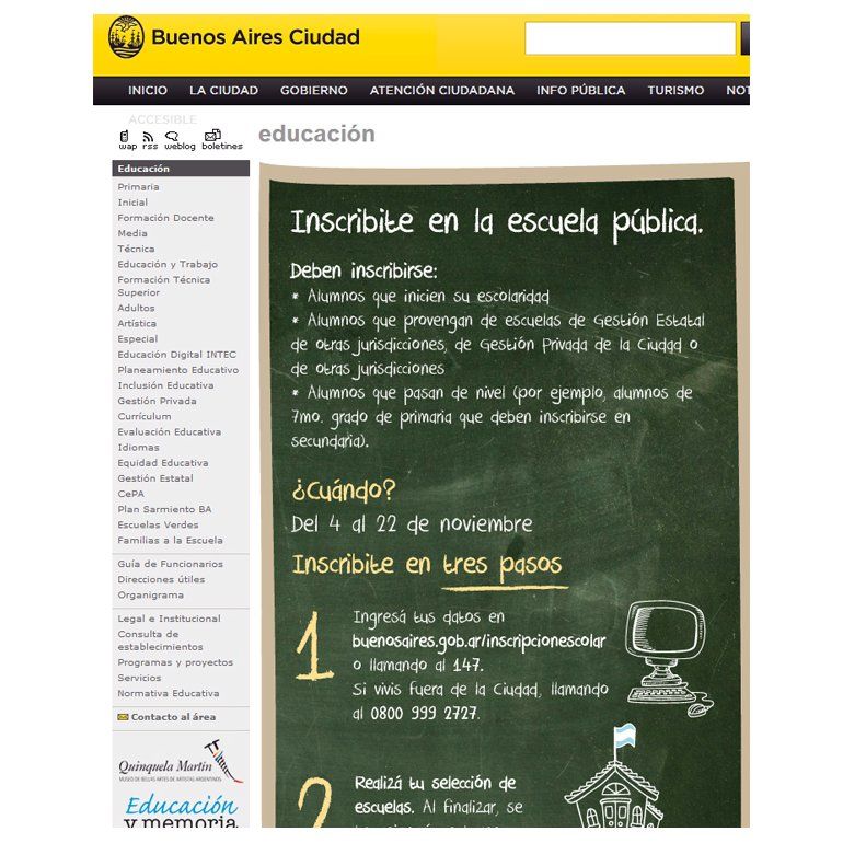 Los interesados deben ingresar a http://www.buenosaires.gob.ar/areas/educacion/inscripcionescolar/,