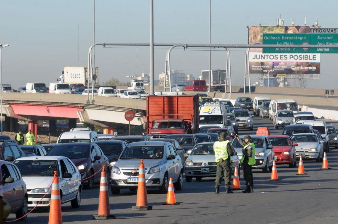 Una protesta de choferes de micros mantuvo esta mañana cortada parcialmente la autopista Buenos Aires-La Plata a la altura del peaje Dock Sud, mano a la ciudad de Buenos Aires, dejando solamente dos carriles libres para la circulación vehicular, lo que provocaba un caos de tránsito.