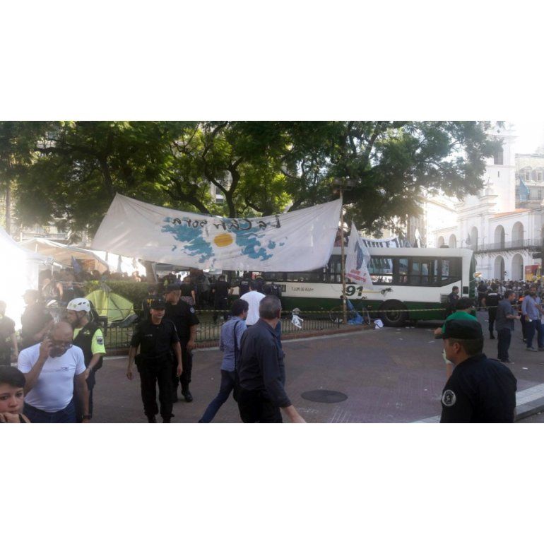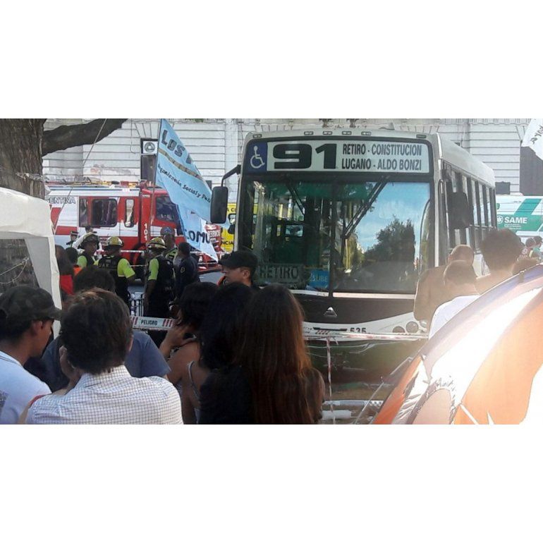 Al menos 12 personas resultaron heridas luego de que un colectivo de la línea 91 que circulaba sobre Diagonal Norte, atropelló a dos ancianas que cruzaban Bolívar por lo que el chofer perdió el control de la unidad e ingresó a la Plaza de Mayo donde se encuentra el acampe por Milagro Sala, embistiendo a varias personas.