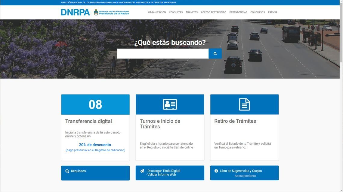 El trámite se debe realizar en la página web de la Dirección de los Registros Nacionales de la Propiedad del Automotor y de Créditos Prendarios
