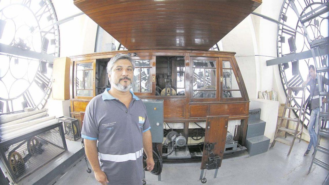 Recuerda que "esta torre va a cumplir 102 años desde su inauguración, y el reloj es el más grande de todos" y detalla que "tiene cuatro metros y medio de diámetro, sus campanas pesan siete toneladas, su carillón tres, y el péndulo 100 kilos". Reconoce que le parece extraño pero muy grato estar a cargo de esta tarea tan singular, remarca que "cuando la inauguraron en 1916 aquí no había casi nada, y es muy grato que haya vecinos o habitués de la zona que te agradecen porque gracias a nuestro trabajo ellos pueden ver la hora exacta".