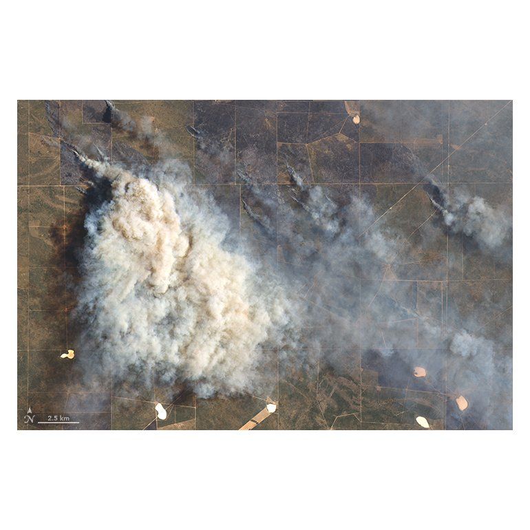 La fotografía tomada por el satélite Landsat 8 es apenas ilustración del infierno que viven La Pampa, Río Negro y el sur de Buenos Aires. "Una columna de humo al sur del Río Colorado", describen desde la NASA. La imagen es del 1 de enero y queda vieja: debido a los fuertes vientos y a la escasez de lluvias, el fuego superó las 600 mil hectáreas y, según los productores de la región, la situación se tornó "desesperante".