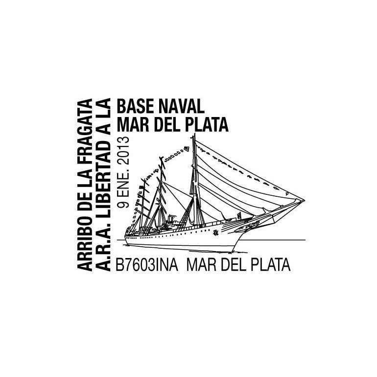 El matasello del arribo de la Fragata se suma a emisiones anteriores, dos de las cuales corresponden a una hoja block con motivo del Encuentro y Regata Internacional realizado en Mar del Plata en el año 2010 -en el que se exhibe una imagen del buque escuela- y un entero postal tarjeta de la Fragata A.R.A. Libertad emitido en el año 2007.
