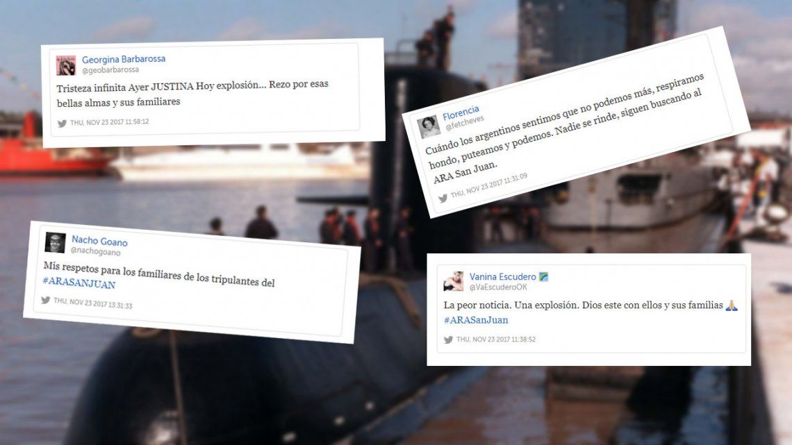 Actores, conductores y otras celebridades locales utilizaron sus redes sociales para lamentarse luego de que la Armada confirmara la existencia de un "evento violento no nuclear". El día más doloroso de los familiares del submarino
