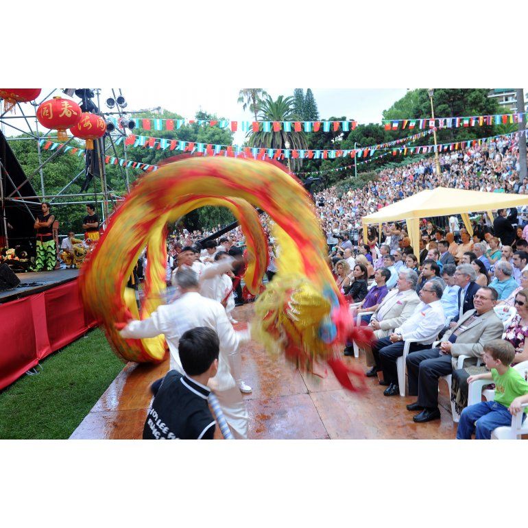 El dragón que otorga buenaventura a quien lo toca se paseó el sábado por la tarde entre la multitud que celebraba el inicio del año chino 4712, aún bajo un cielo encapotado y esporádicas lloviznas, en la porteña plaza de Barrancas de Belgrano, donde esa comunidad asiática realiza la fiesta central, que durará todo el fin de semana. A pocas cuadras del llamado Barrio Chino de Belgrano, miles de miembros de la comunidad, otros vecinos y turistas comenzaron a disfrutar en ese espacio verde de un continuo espectáculo al aire libre y sobre el escenario, por el comienzo del Año del Caballo de Madera y la Fiesta de la Primavera china.