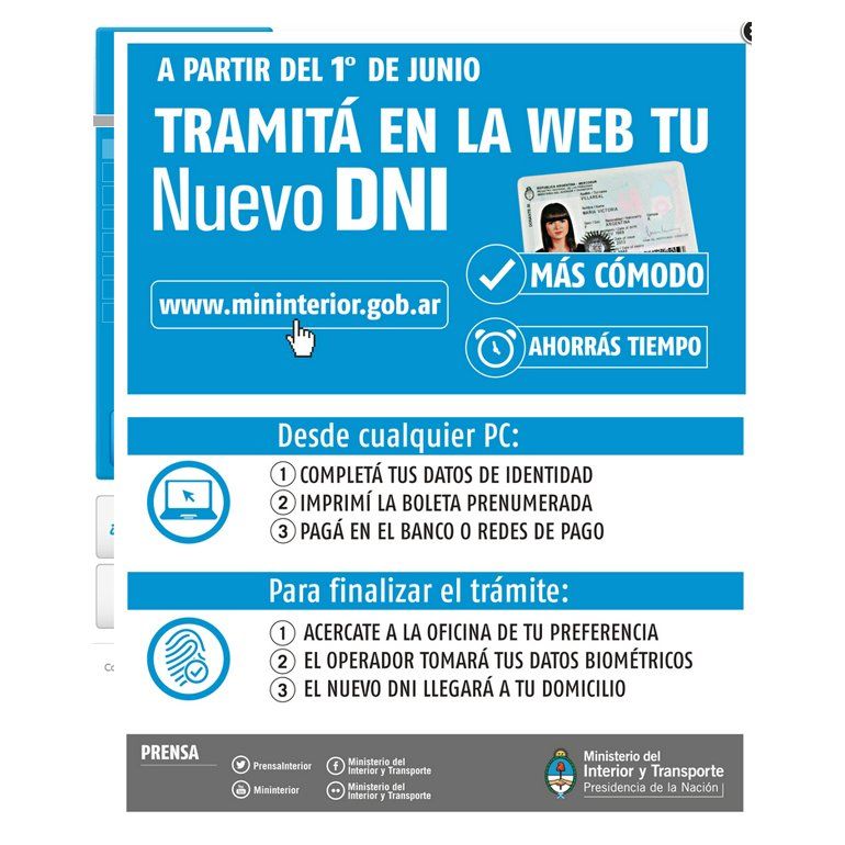 Si bien el trámite tiene instancias que sí o sí deben completarse de manera presencial, el Ministerio del Interior habilitará a partir del 1º de junio un sistema web donde se podrá iniciar la operación.