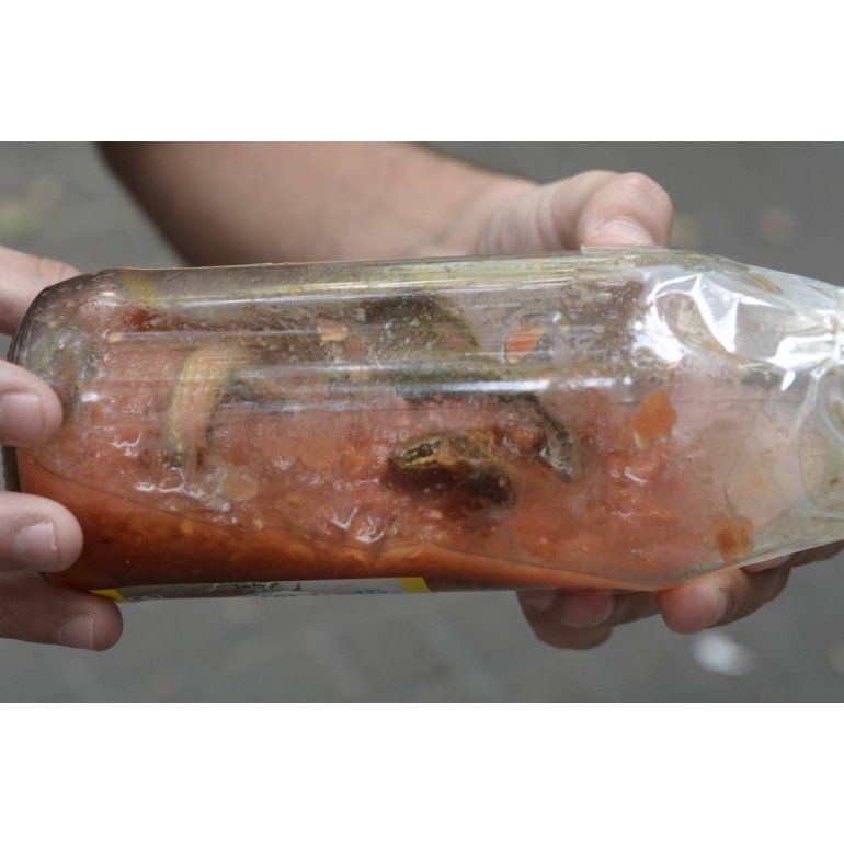 Sin embargo, el shock se produjo cuando después de abrir la botella, preparar la comida e ingerir el alimento, descubrieron al animal muerto dentro.