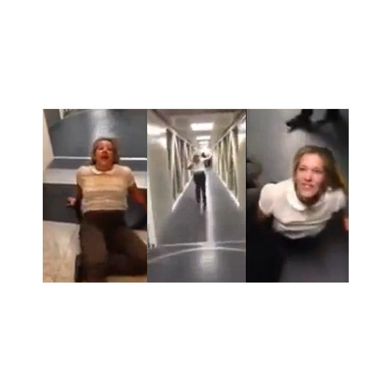 Las imágenes exhiben a la mujer gritando, cayéndose al piso, riéndose y corriendo por los pasillos de la terminal, que sería la de Ezeiza, aunque esa información aún no pudo confirmarse.