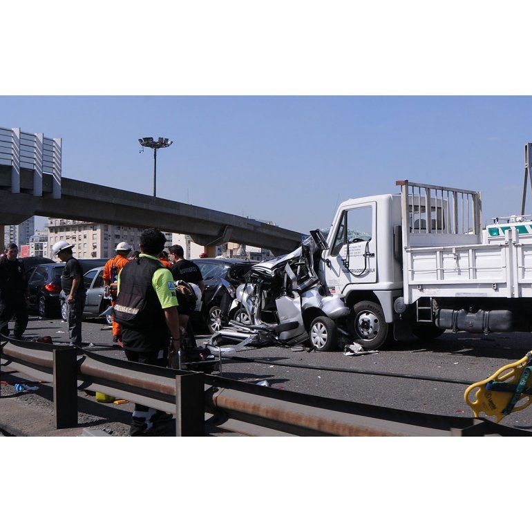 Un choque en cadena se produjo poco antes de las 11 de la mañana en la autopista 25 de mayo, mano a la avenida Huergo, a la altura del barrio porteño de Constitución.