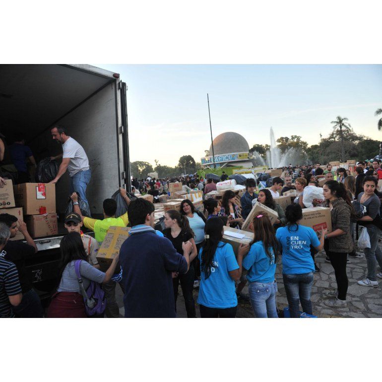 "Argentina, Argentina", coreó la multitud, cuando Juan Carr, de la Red Solidaria hizo el balance de la inmensa cantidad de donaciones recibidas durante la semana frente a la Catedral y ahora en el Planetario que llenaron 210 camiones con ayuda para los damnificados por el tremendo temporal del 2 de abril.