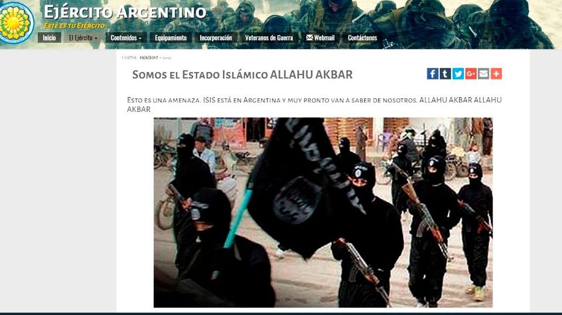 “Esto es una amenaza. ISIS está en Argentina y muy pronto van a saber de nosotros. ALLAHU AKBAR ALLAHU AKBAR (sic, Alá es grande)”, mostraba la página, en la que se podía ver también una foto de supuestos integrantes del grupo terrorista.