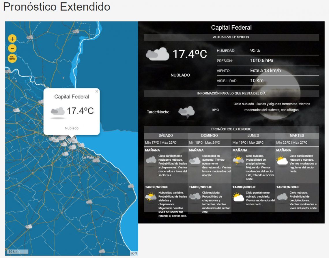 Durante lo que resta de este viernes seguirán las lluvias, chaparrones y algunas tormentas aisladas en el centro y norte de la provincia de Buenos Aires, sur de Santa Fe, sur de Entre Ríos y sur de Córdoba. En esta región se esperan valores de precipitación acumulada entre 30 y 70mm.
