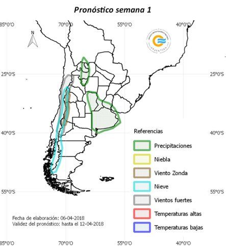 El domingo 8, se prevén precipitaciones entre 30 y 60mm, en el centro y norte de Buenos Aires, Córdoba, sur de Santa Fe y sur de Entre Ríos.