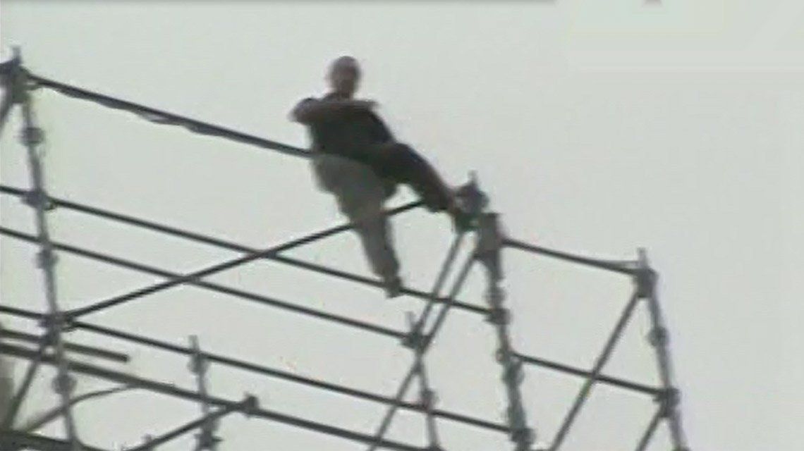 Novillo se trepó a lo más alto de los caños apostados para la restauración del lugar y comenzó a amagar con arrojarse, mientras abría los brazos y, desde las alturas, saludaba a los transeúntes, que miraban azorados.