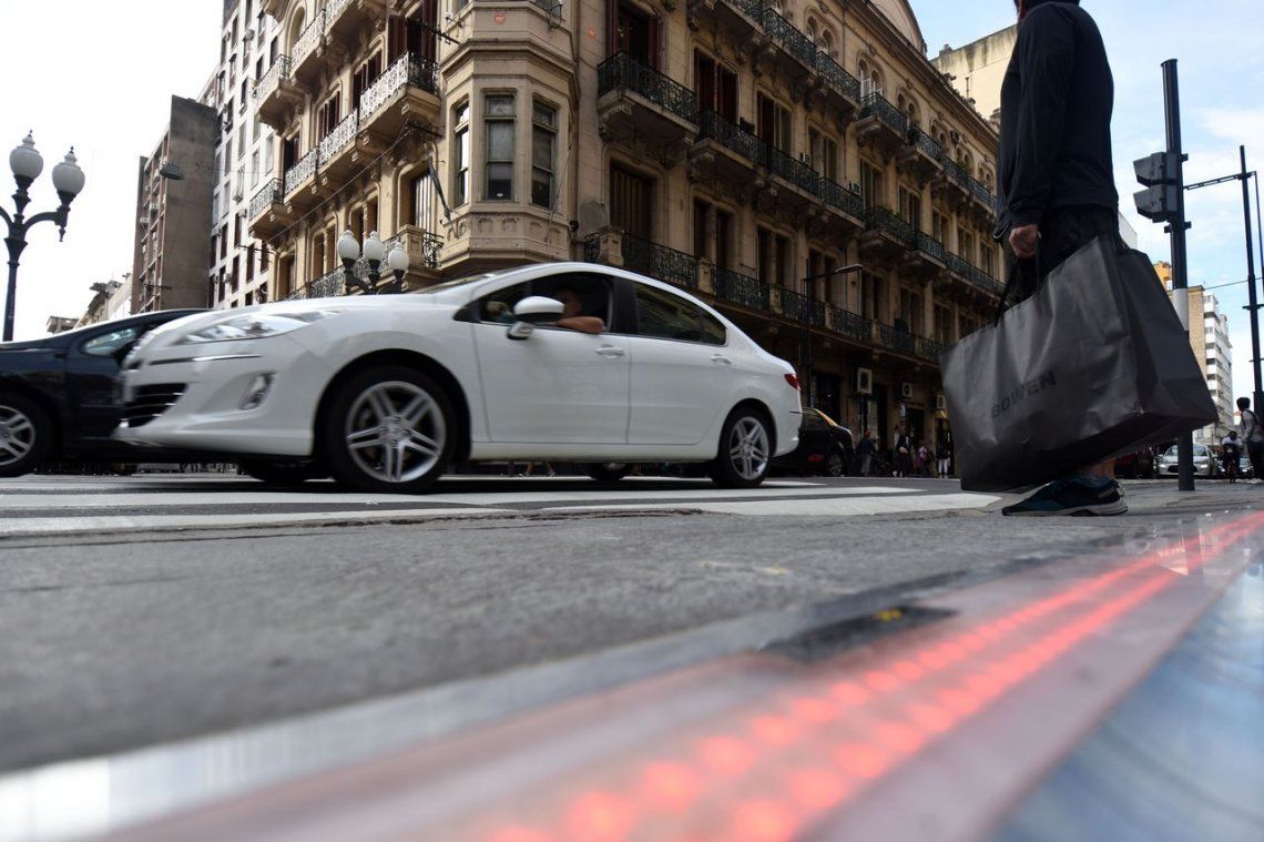 El semáforo horizontal o de piso comenzó a funcionar esta mañana en la intersección de la Peatonal -Avenida Córdoba- y calle Corrientes, en pleno centro de esta ciudad santafesina.