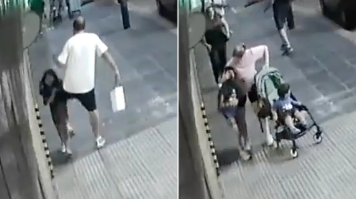 La mamá, que venía unos pasos atrás con un cochecito, corrió para asistir a su hija que lloraba aterrorizada.. “Solo vi que mi hija estaba en el piso, no entendí qué había pasado”, dijo la mujer ante los efectivos que se acercaron después de ver las imágenes captadas por la cámara de seguridad del edificio
