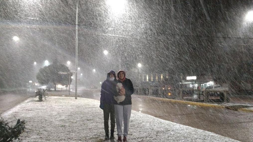 Los copos de nieve cubrían Bahía Blanca, Sierra de la Ventana y otras localidades, con temperaturas que rondaban por la noche cerca de los cero centígrados.