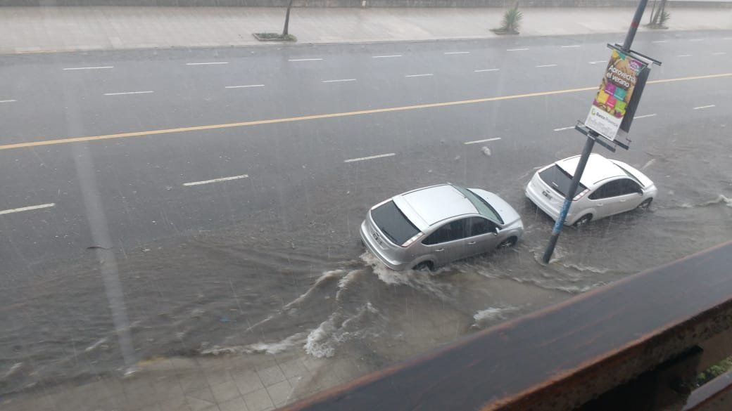 Un fuerte temporal de lluvia, acompañado de viento y granizo que azotó el mediodía de este jueves durante 20 minutos a la ciudad de Mar del Plata provocó el anegamiento de algunas calles del centro y de diferentes barrios de la ciudad.