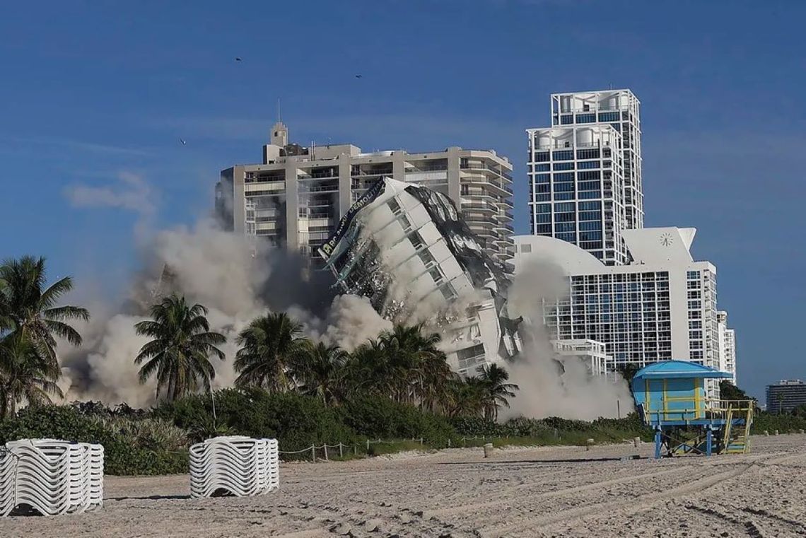 El Hotel Deauville, de 17 pisos, se derrumbó después de varias explosiones que levantaron una gran nube de polvo. El edificiol se construyó en 1957 y Kennedy dio un discurso en él ante la Convención de Jóvenes Demócratas en 1961.