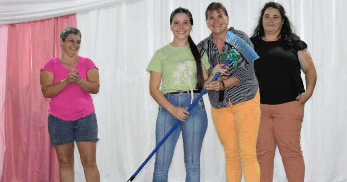 Un evento organizado por la Municipalidad de Colonia Aurora, en Misiones, incluyó la entrega de escobas, baldes y escurridores como premios durante juegos y concursos.