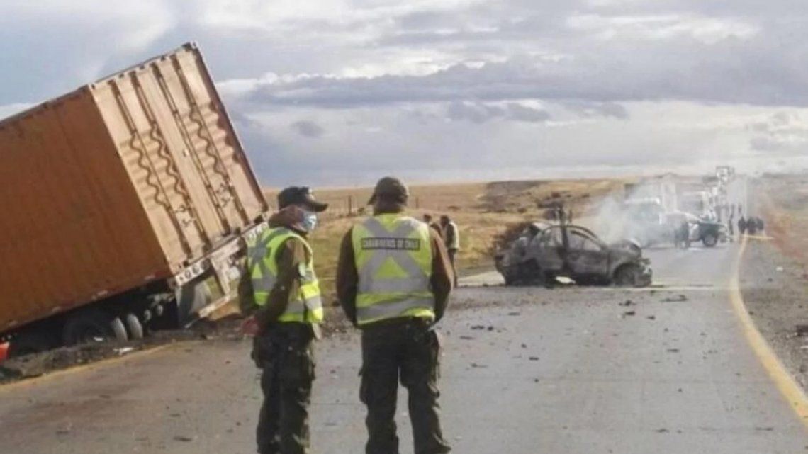 Un matrimonio y sus tres hijos menores de edad que volvían desde Chile a la ciudad de Río Gallegos murieron al chocar el auto en el que transitaban con un camión, ya que tras la violenta colisión, el vehículo volcó y terminó incendiándose.