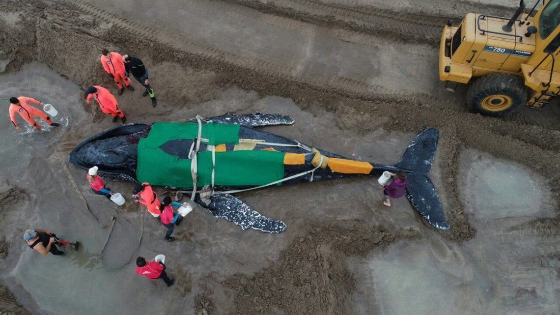 Durante 48 horas, diversos equipos se movilizaron para salvarle la vida a la ballena. En la tarde del domingo, pasadas las 18:00, había arribado al lugar una grúa a fin de colocar alrededor del animal unas lingas para atar a estas cables de acero, con el propósito de que en la mañana del lunes, con el punto máximo de marea alta, barcos remolcadores del puerto de Mar del Plata la llevaran aguas adentro, indicó Prefectura Naval. Sin embargo, los esfuerzos no rindieron sus frutos y el animal falleció.