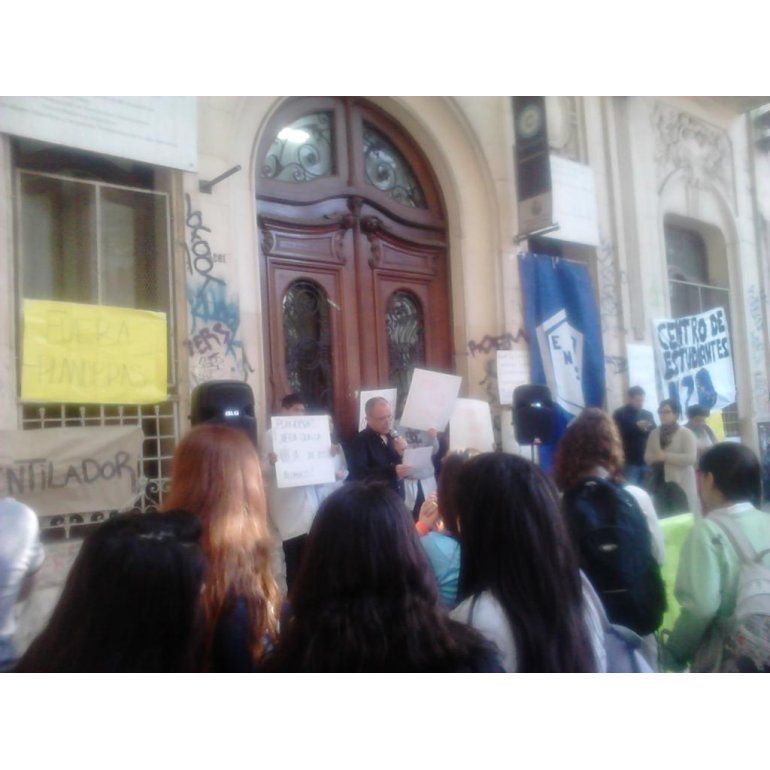 Pablo Cesaroni, miembro de la Cooperadora del Normal 7, que comparte edificio con la Escuela de Comercio 8, expresó que "estamos denunciando la desidia por parte del Gobierno de la Ciudad en relación a la situación edilicia de nuestra escuela" y detalló que "el lunes se cayó una puerta en un baño de primaria, la semana pasada se inundaron dos pisos, se nos cayeron 10 puertas en lo que va del año y también placas de los techos".