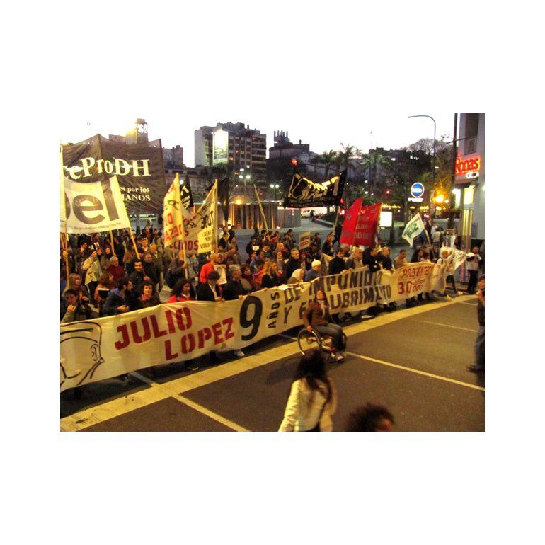 Las agrupaciones se concentraron en Plaza Moreno, frente al municipio donde se realizó el juicio contra Miguel Etchecolatz, y desde allí marcharon hasta la casa de Gobierno provincial donde se realizó el cierre.López desapareció de su domicilio en el barrio platense de Los Hornos el 18 de septiembre de 2006 mientras se sustanciaba el juicio por delitos de lesa humanidad ante el Tribunal Oral Federal 1, donde dio testimonio sobre su secuestro ocurrido en octubre de 1976 y relató haber sido torturado por Etchecolatz mientras estuvo detenido en la comisaría quinta de La Plata.