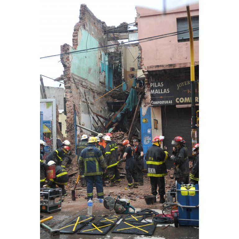 Según informaron fuentes del SAME y de bomberos, tras más de una hora de trabajo de los rescatistas, el hombre fue retirado con vida y ahora se procede a apuntalar los restos de la construcción, ubicada en la calle Lima al 1700.