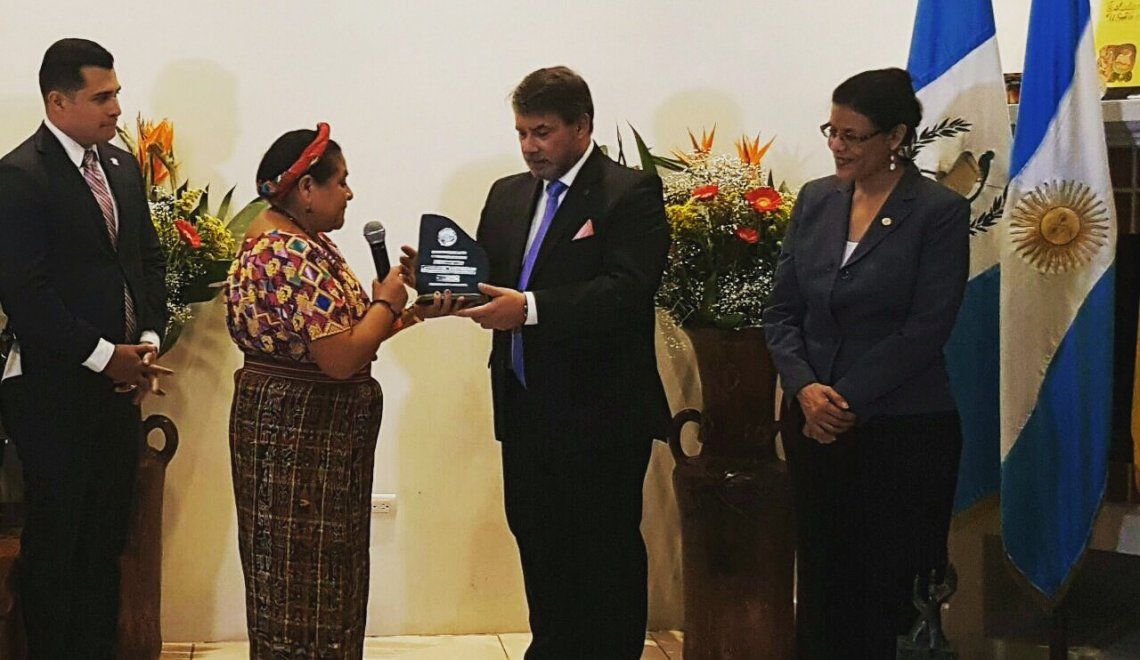 El empresario argentino Guillermo Whpei, presidente de la Fundación para la Democracia Internacional, fue homenajeado por la Premio Nobel Rigoberta Menchú Tum en la ciudad de Guatemala.