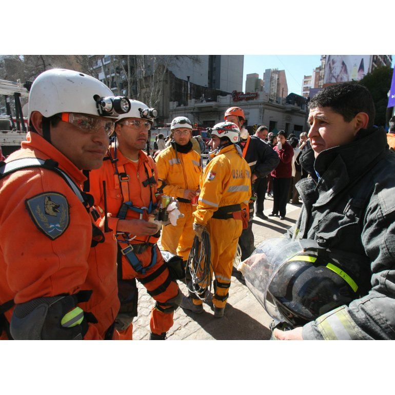 los bomberos y rescatistas se reunieron en medio de la calle Salta y levantaron sus cascos mientras los vecinos los aplaudían, al tiempo que otros se abrazaban con sus familiares.